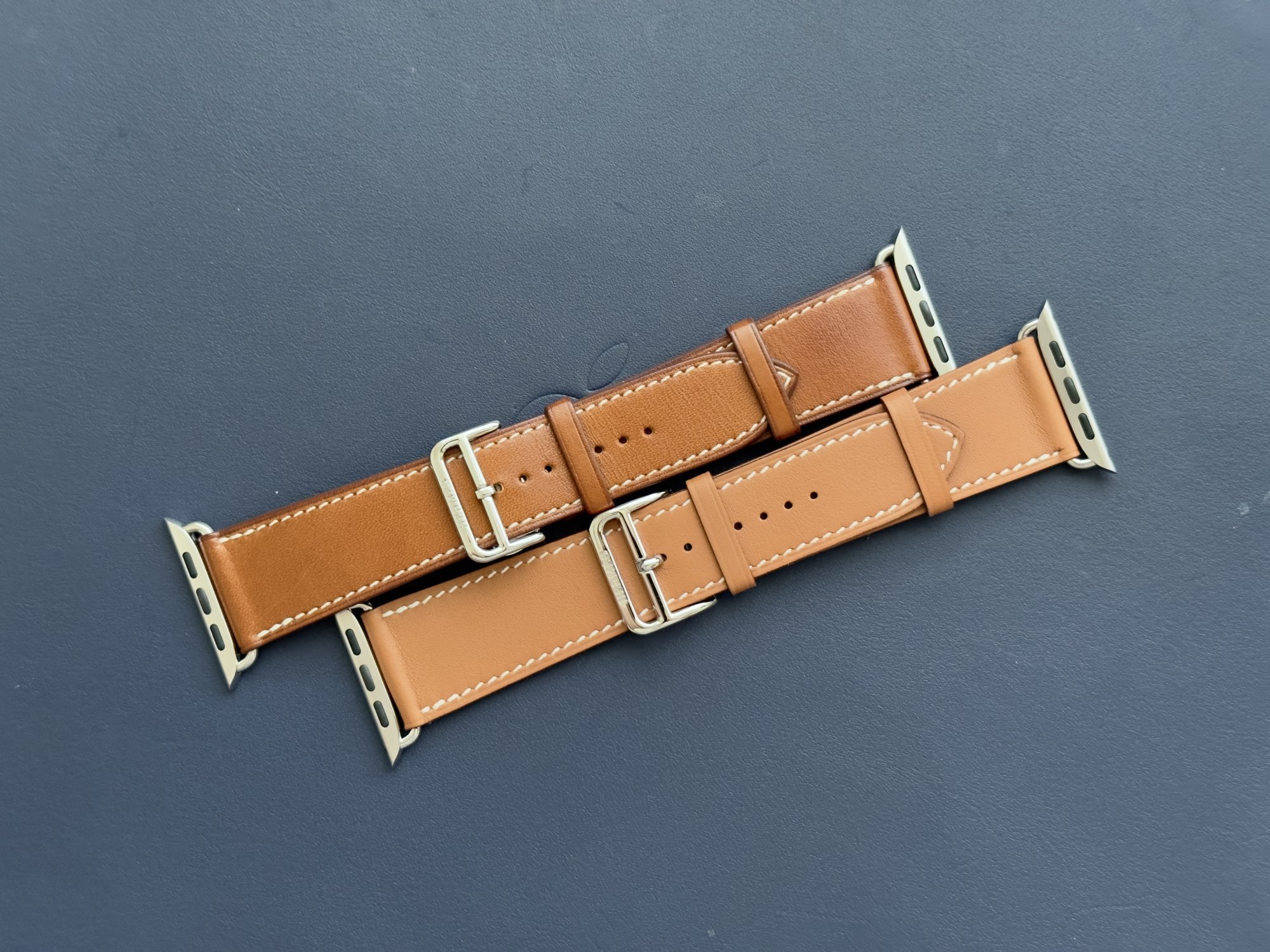 Here is in this picture I’m comparing it to the Fauve Barenia Leather Deployment Buckle from my Series 4.