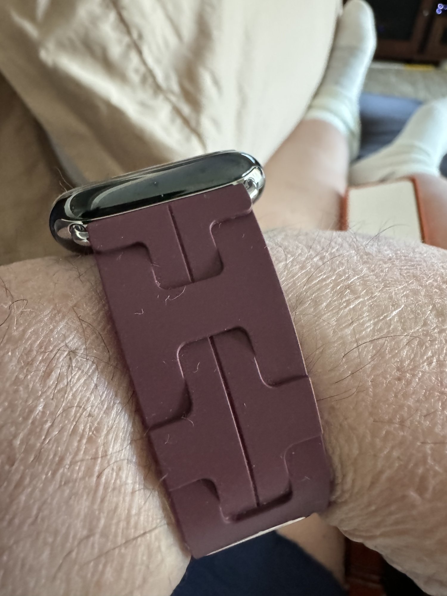 I feel like it’s very small. I’m normally the second smallest hole on sport and Hermes bands. But this band, I’m the fourth smallest hole.