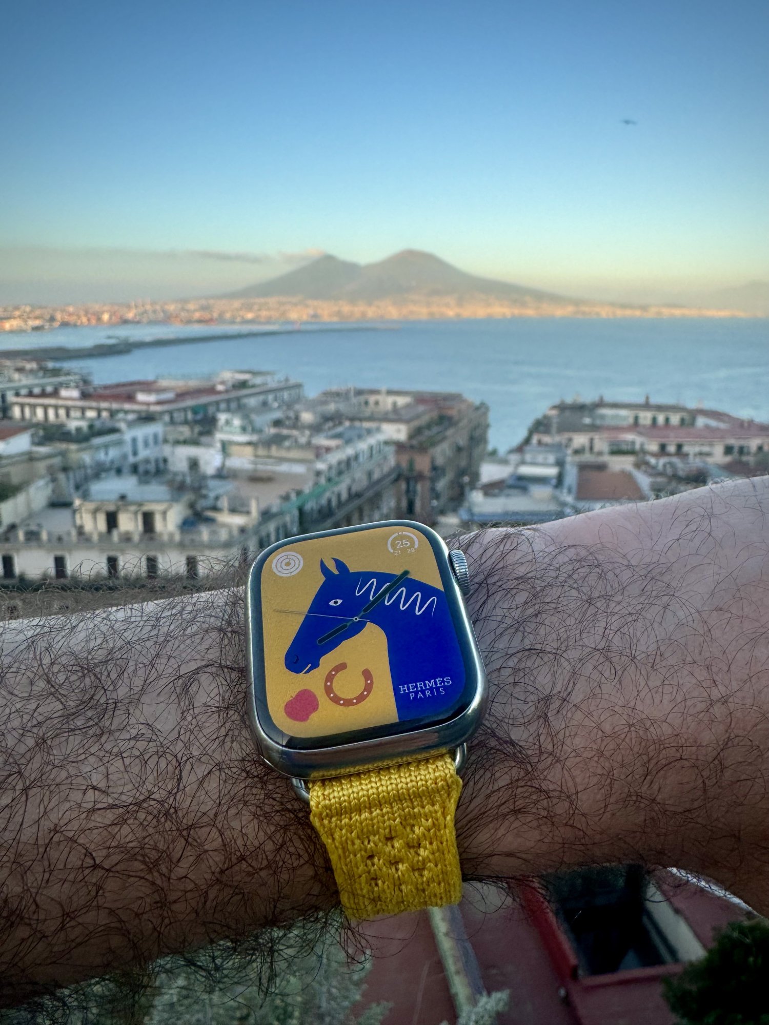 Awesome photo, one the nicest I’ve seen.Jaune de Naples Hermès Tricot Single Tour, in Naples, overlooking the Gulf of Naples and Mount Vesuvius 🌋