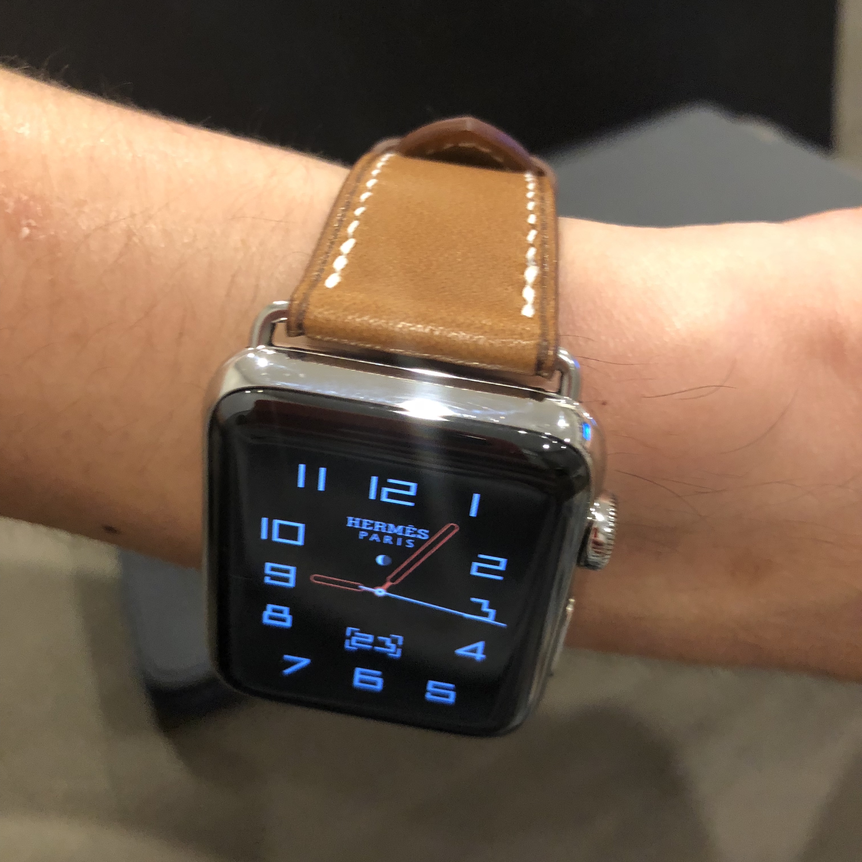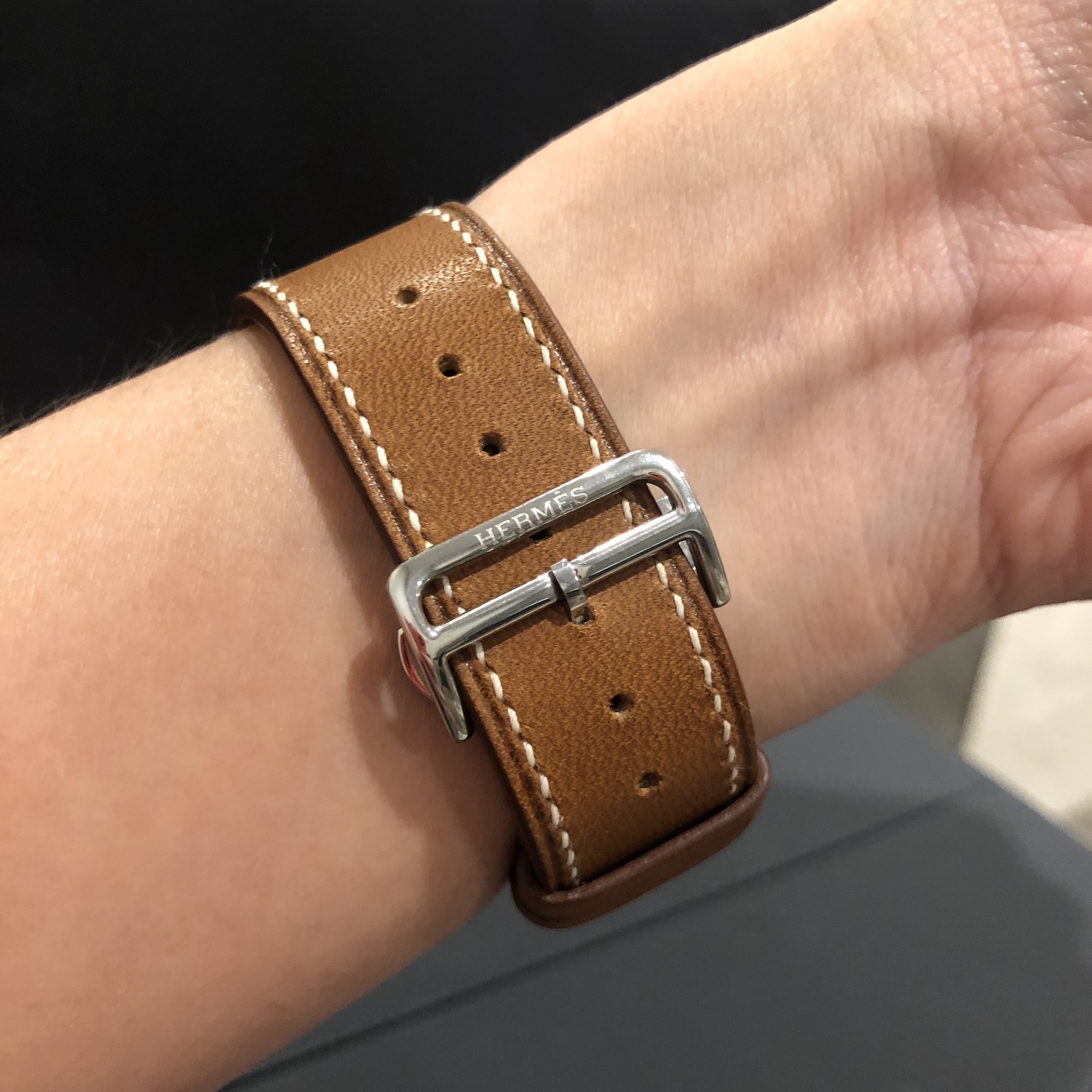 I’m on business in San Francisco and the Apple Store in Union Square had the Hermès Single Tour in stock and I bought it. She told me Apple usually would honor a return last 30 days but she couldn’t guarantee it. I might just give it to my wife when I get back on Friday from my trip as an early Mother’s Day gift. Apple was able to give me the Hermès bag as well.