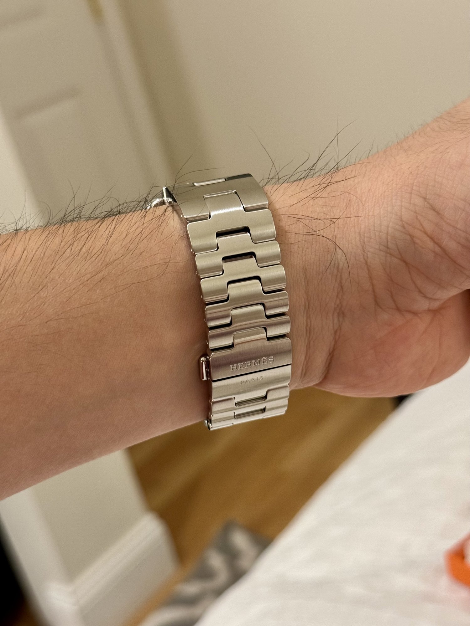 Here you have a few comparisons between the Hermès Satiné Grand H and the Silver Link Bracelet.