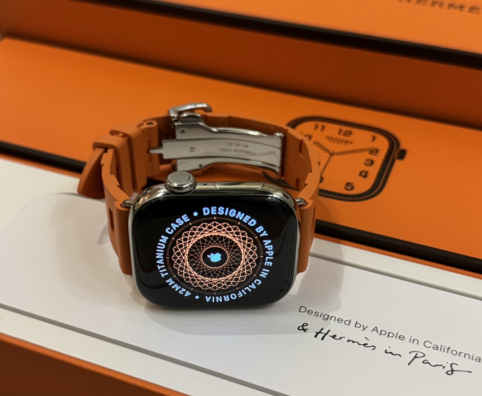 Can you show us the difference between the silver Hermes finishes steel v titanium? I guess I must have read wrong but I thought the thread consensus was everything “silver” matches.To me, orange is more casual. I didn't rate it on the non-Hermes titanium finishes. The brighter silver titanium casing suits it just right. I think it looks great on silver aluminium too.