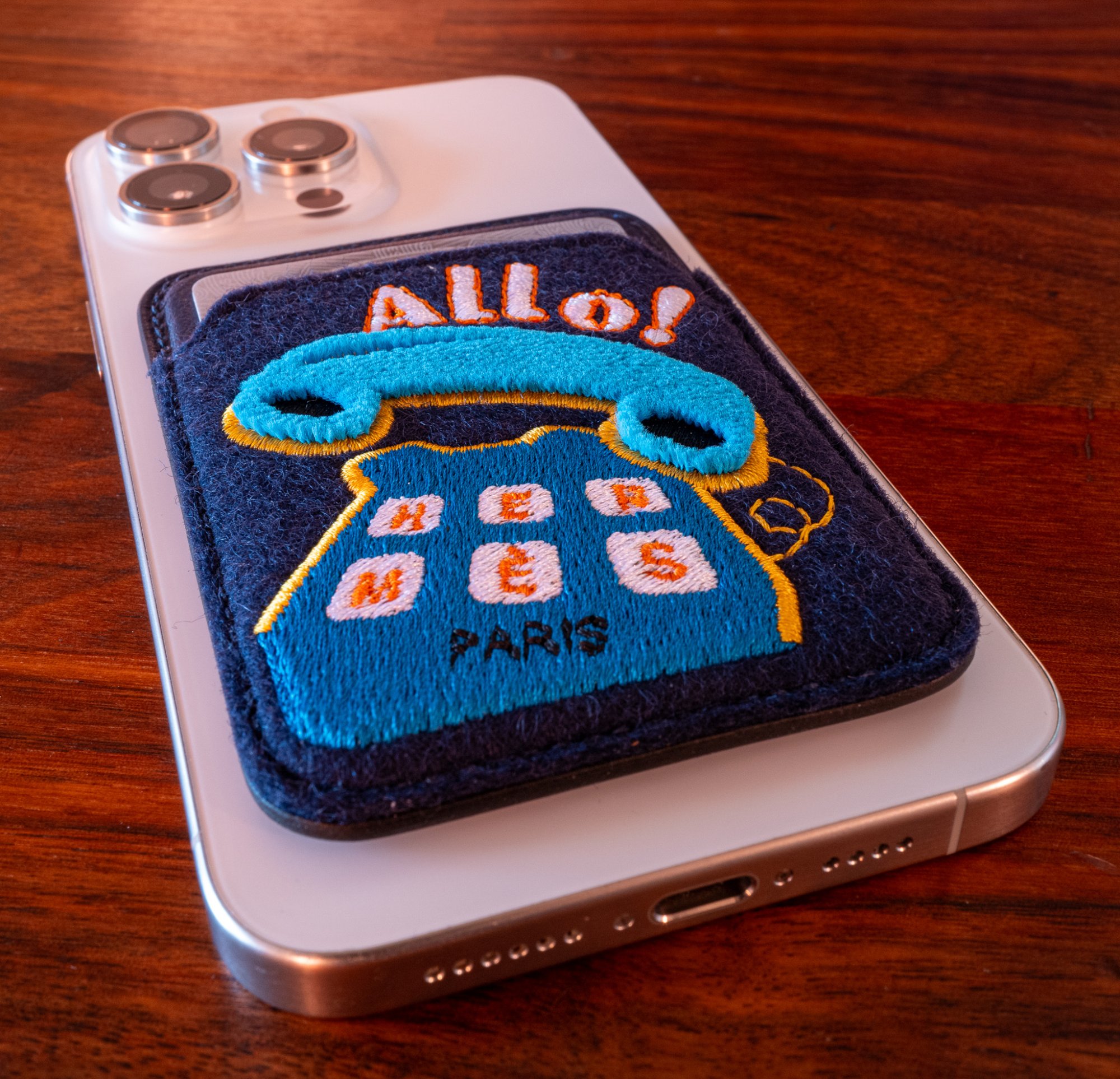 Ok these new MagSafe card holders from Hermès are gorgeous. It doesn’t come across well in the product photos, but they have a real 3D depth to them due to the differing embroidery. Each one has a deeper flocked section too - for the horse it’s the mane, with the rocket it’s the fire coming out the back, and for the telephone it’s the handset. The overall effect looks great.