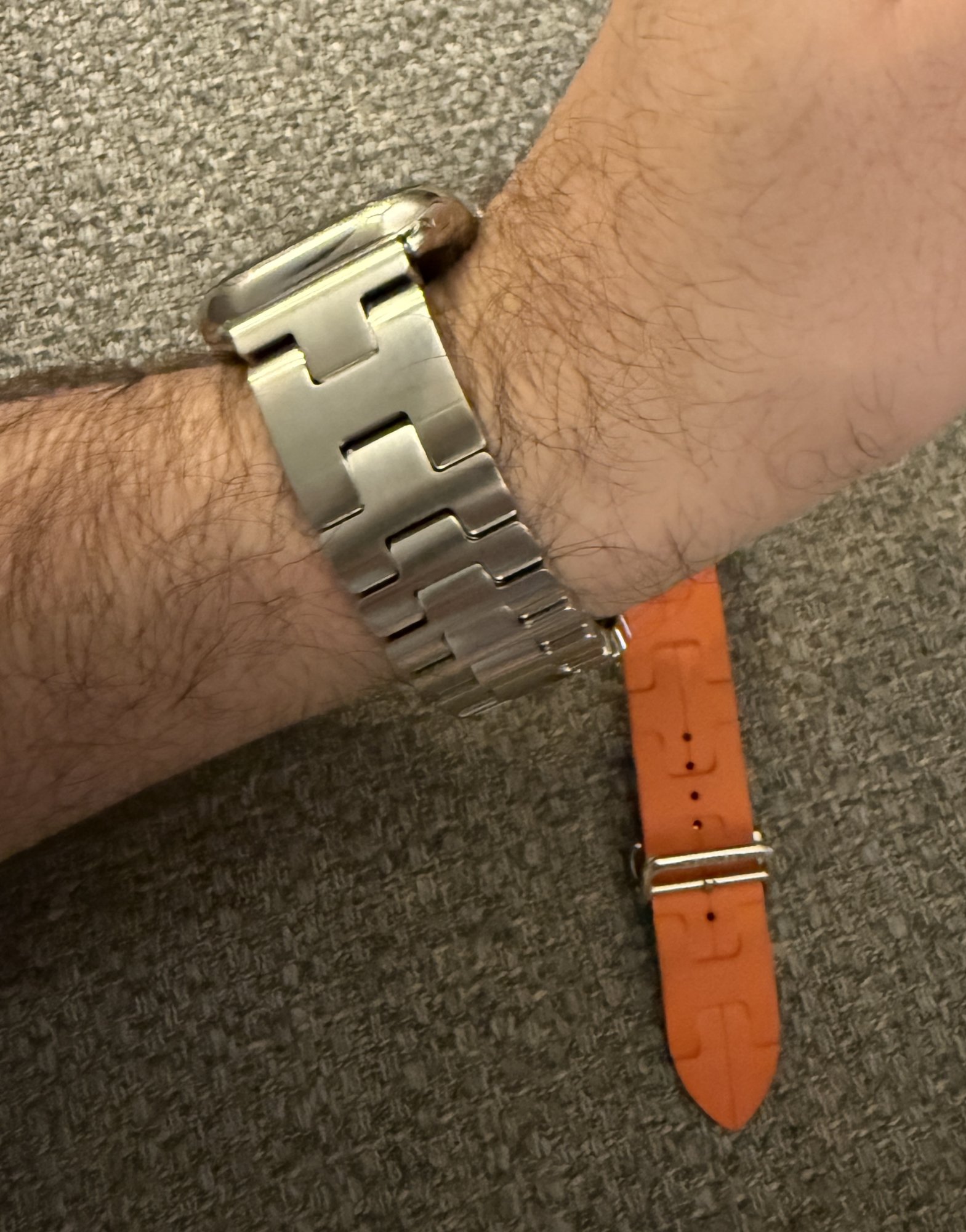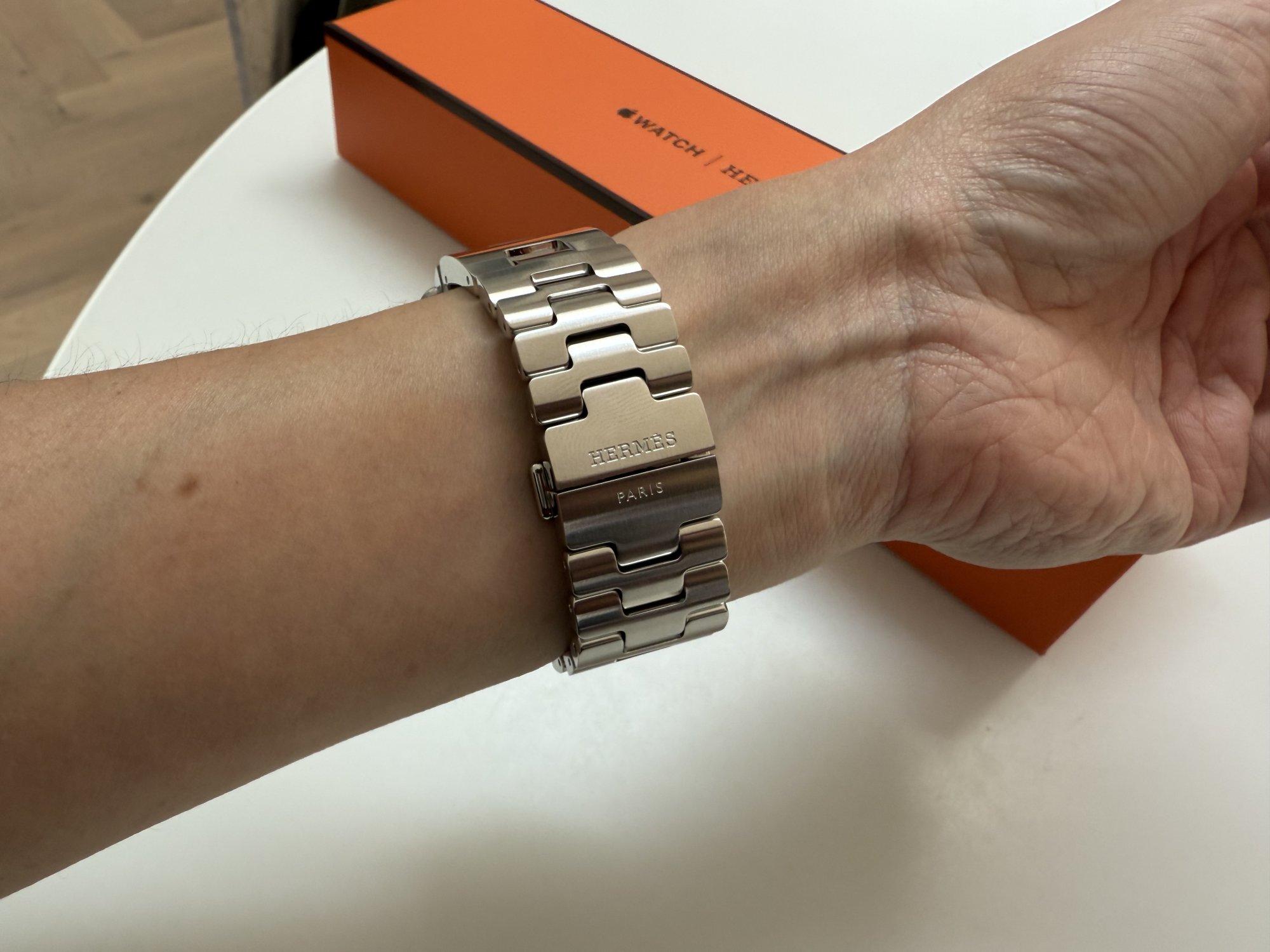 Y’all are all into the hype of this new, first ever link bracelet from Hermès. Anyone have a stainless steel from earlier series’s and put this band on their Apple Watch? Also on gold stainless steel.Wow, that was quick! Ordered my Grand H Satiné band (46 mm, large) on Nov 1st, got it today, six days later. Love it!