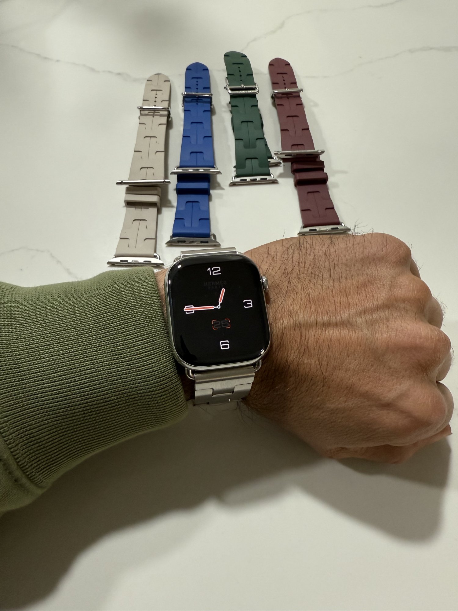 Got my orange Kilim and S10 at the Michigan Ave store last week. Still can’t source a Grand H (I need 42mm in small and then we pray that that is small enough), but I’ll try Hermes and Apple in Seoul next week.