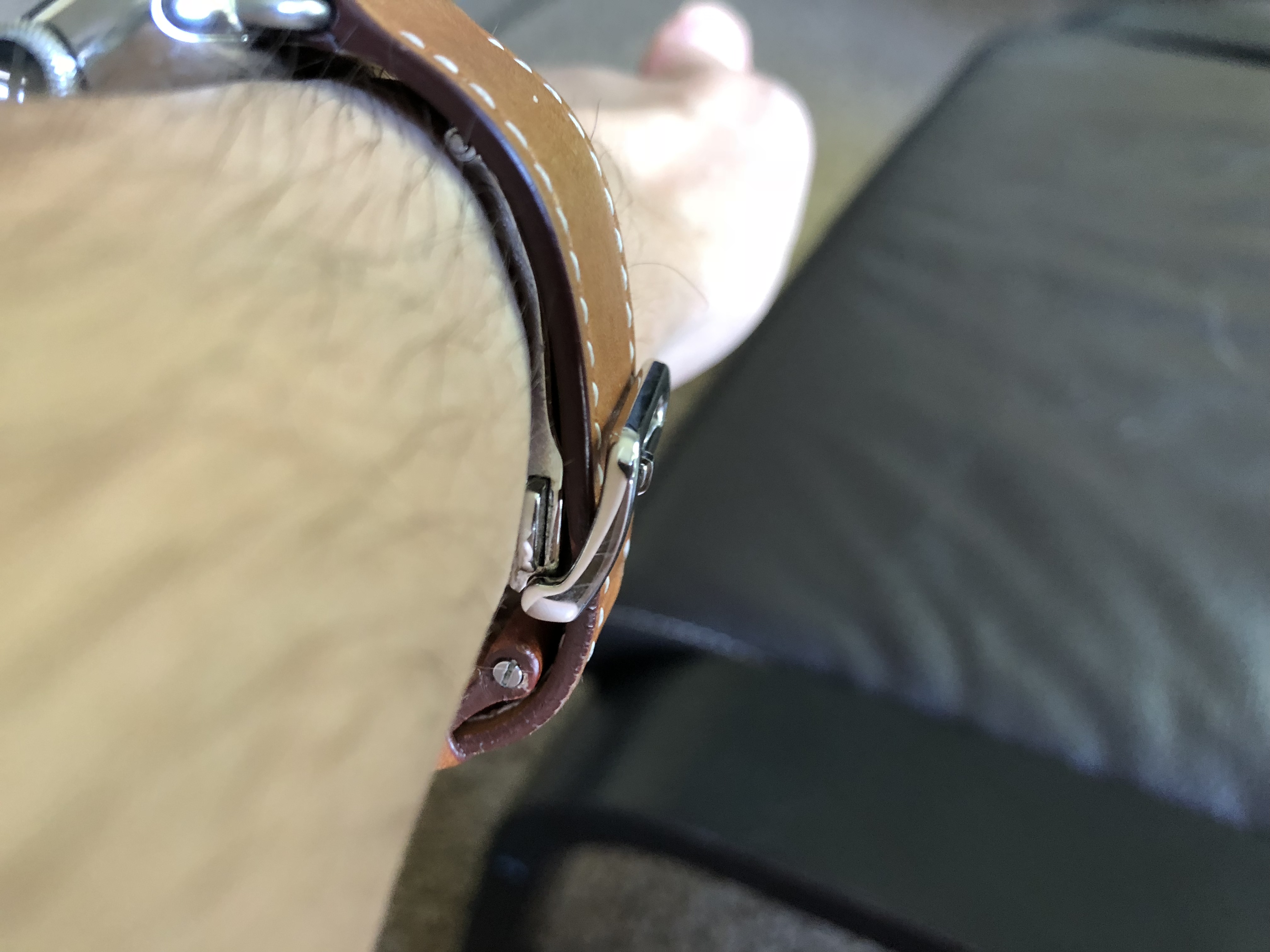 I did notice that the deployant sits underneath your wrist in different positions depending on your size of wrist. I suppose ideally all of the deployant is on the underside of your wrist, but if your wrist is on the small side or large side for the strap, then the deployant would creep up to one side of your wrist. And since the deployant isn’t contoured for the side of your wrist, this could make it less comfortable, or maybe more comfortable as then there will be a small gap between the strap and your wrist giving your wrist breathing room on hot days. The strap wouldn’t lying tight against your wrist. In effect the deployant is lifting the strap a bit off your wrist.