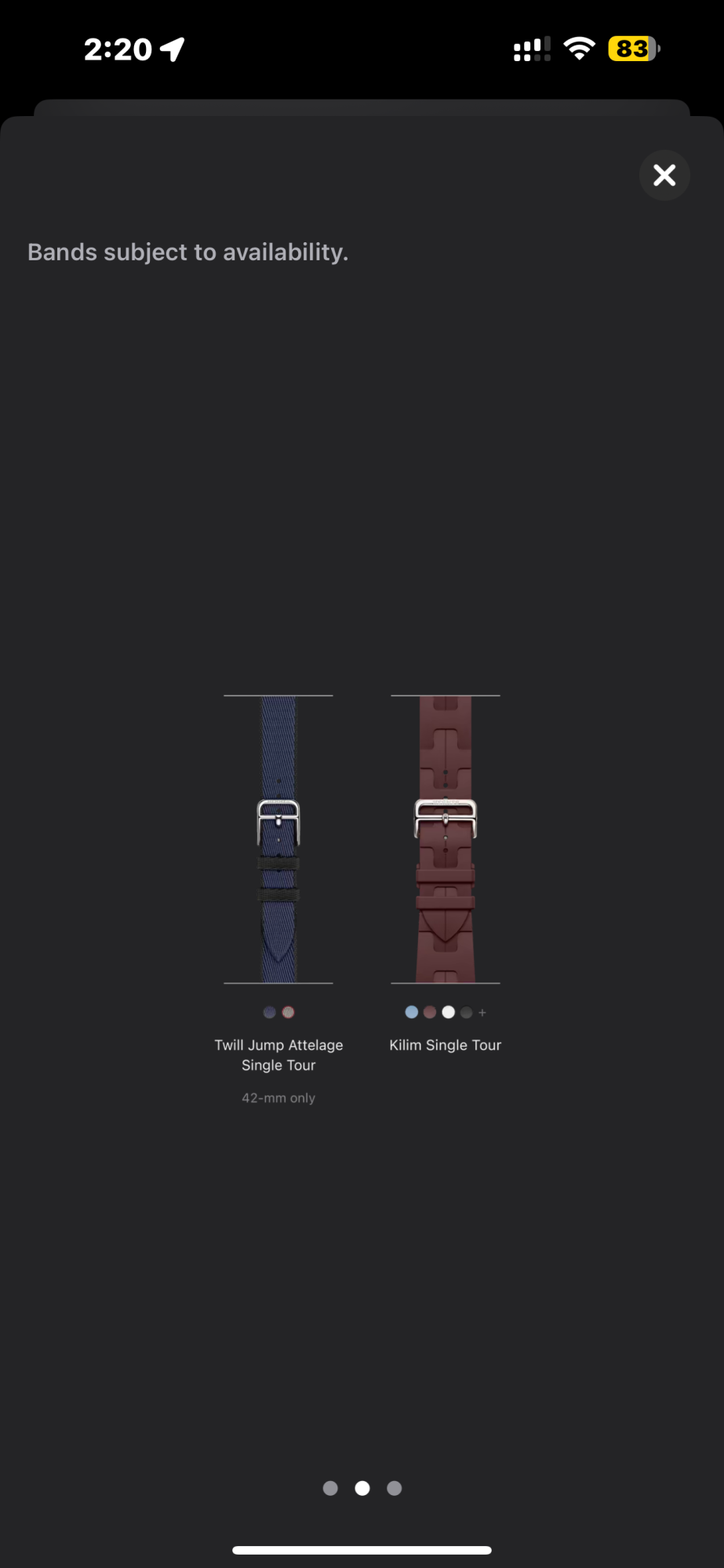 Also ordered Gris ultra band for series 11 and the bordeaux and blue Kilim bands. And they other new series 11 Hermes band. Oh boy.