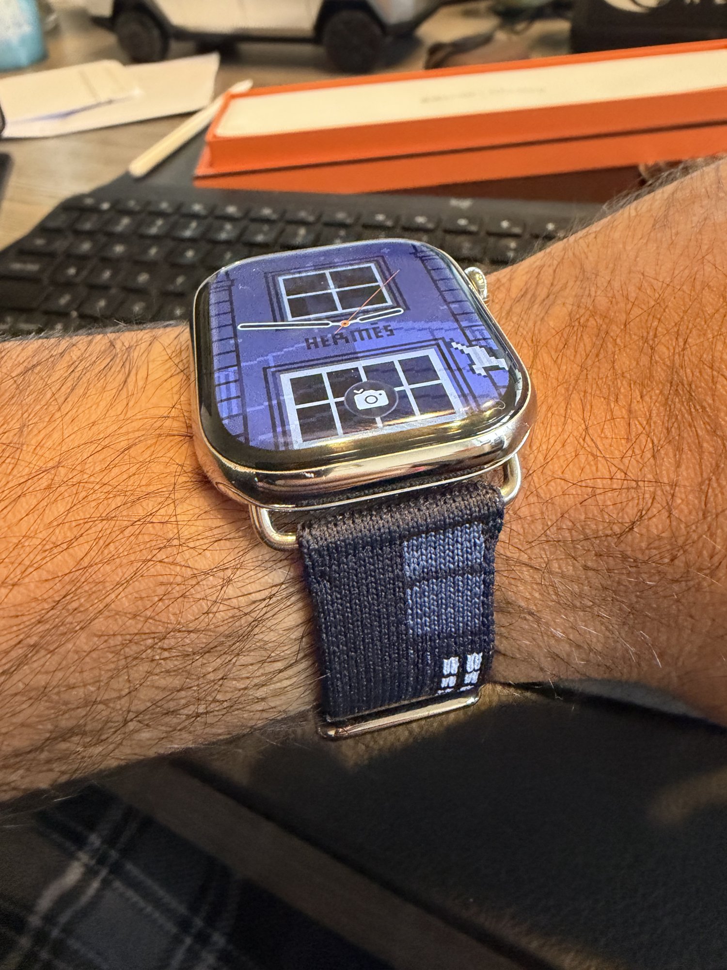 To follow up my own post, I just received the Fougourg Party from Hermes and I’m not sure how I feel about it. The quality of the material is top notch, a nice blend between soft and durable firmness that feels high quality. For some reason the hues of blues on the band looked to be a bit more vibrant in pictures and online. I do find the design and the split colors with the windows a bit cool, but but I’m not immediately too impressed. I don’t know, I think the collectors nature of this one got to me. I’ll try it for another day or two and see how I feel. I believe Hermes.com has a return policy in case I decide to return. I never had to return a band to Hermes.com so hopefully wont be too much of an issue.Today I'm seeing stock of the Faubourg Party 46mm band at a local Apple store (The Grove in LA), if someone is looking for one here. It may also be in stock at other stores, but looks like they are trickling in!