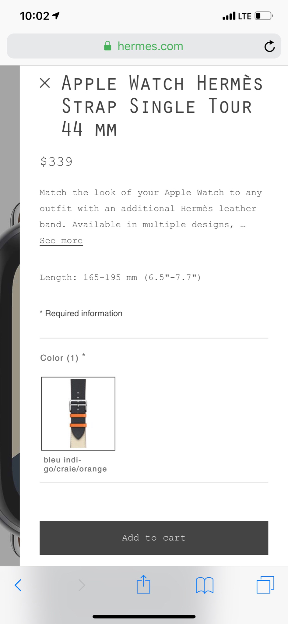 I need the Apple parts number for the Apple Watch Hermès - 42mm Bleu Indigo Swift Leather Single Tour strap. Can anybody help ? (so strap only)