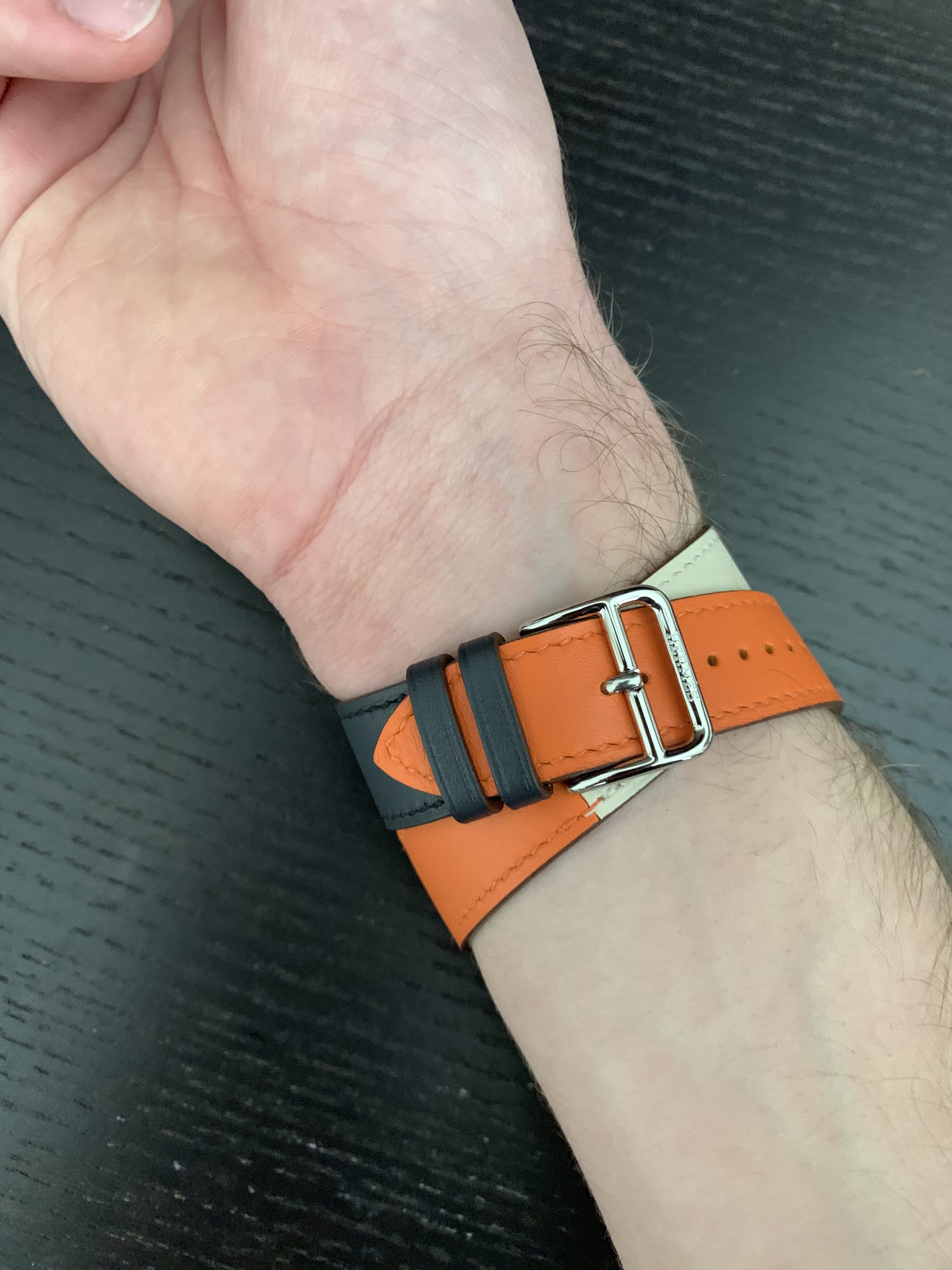 The extension links are of the same thickness, correct?I don't have a Hermes, but I can tell you the Apple link bracelet (marked for the 42mm watches) fits absolutely perfectly on my 44mm Series 4. The connector is absolutely flush with the watch at all points.