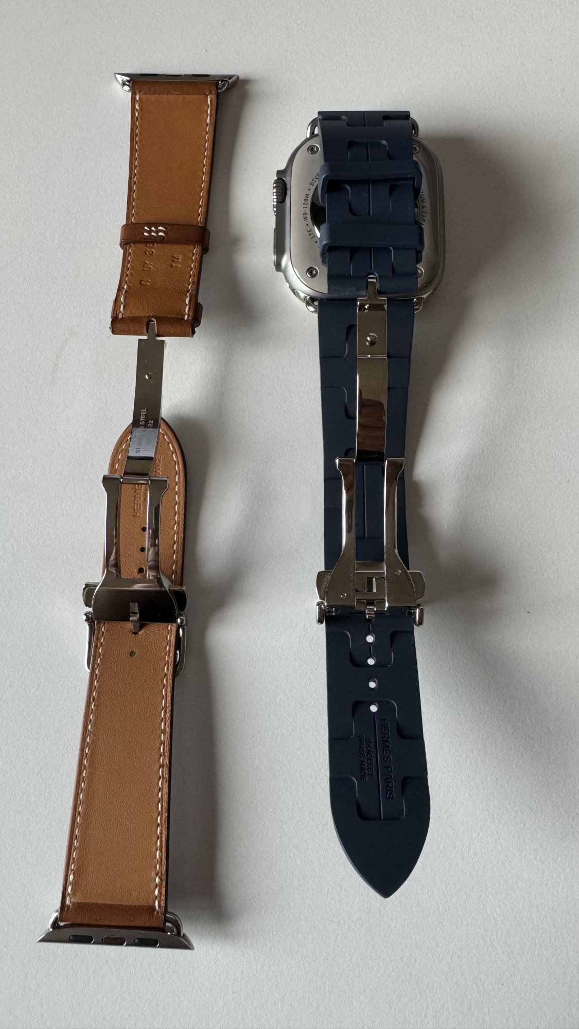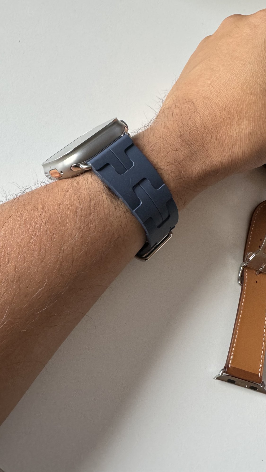 I love my Ultra with the blue ocean band, the Kilim looks like a more refined and interesting version of that so I am picking up the Kilim in rouge and kaki today. Has anyone else tried the Hermes bands with the Ultra? I saw someone mentioning sanding down the finish to more closely match the titanium brushed look but haven't seen photos online anywhere.