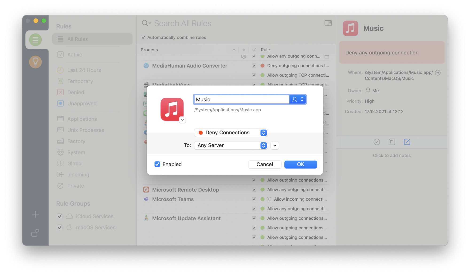 # groups in LittleSnitch, otherwise Music.app will use a proxy daemon to