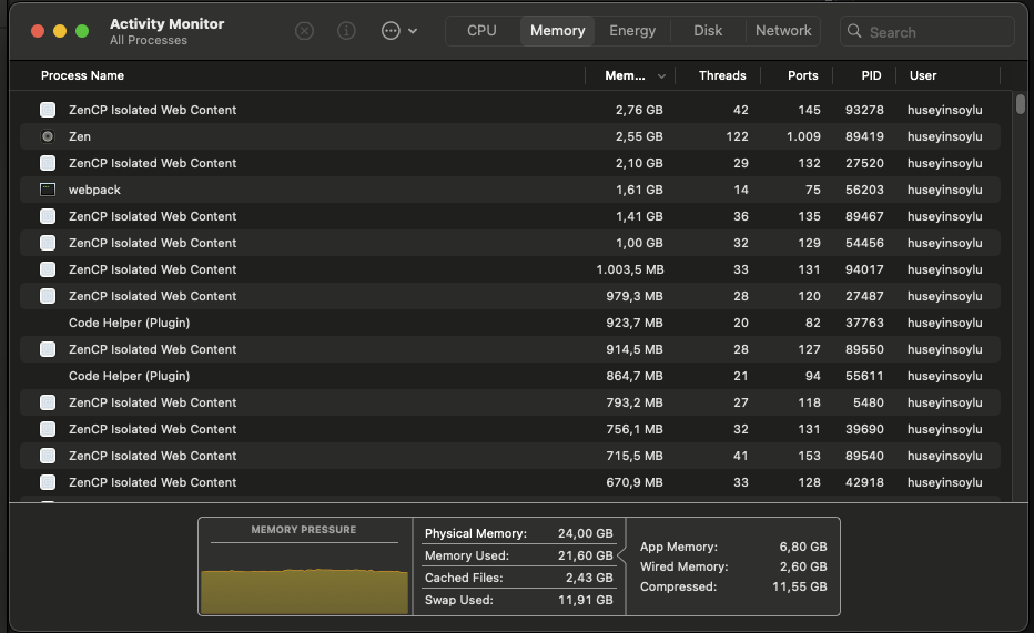 This week I bought the 24 GB M4 Pro model. I’ve installed my programs, set everything up, and started using it. I’m a software developer, and I also tend to keep a lot of tabs open in my browser.
