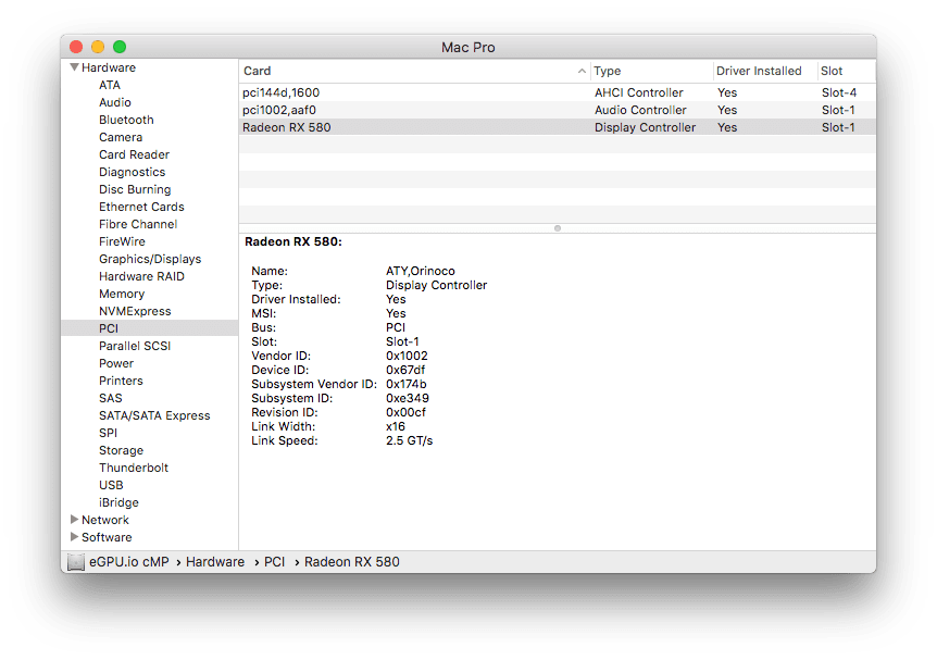 113-4E353BU-O4E for RX 470/480/570/580 - macOS shows Radeon RX 580