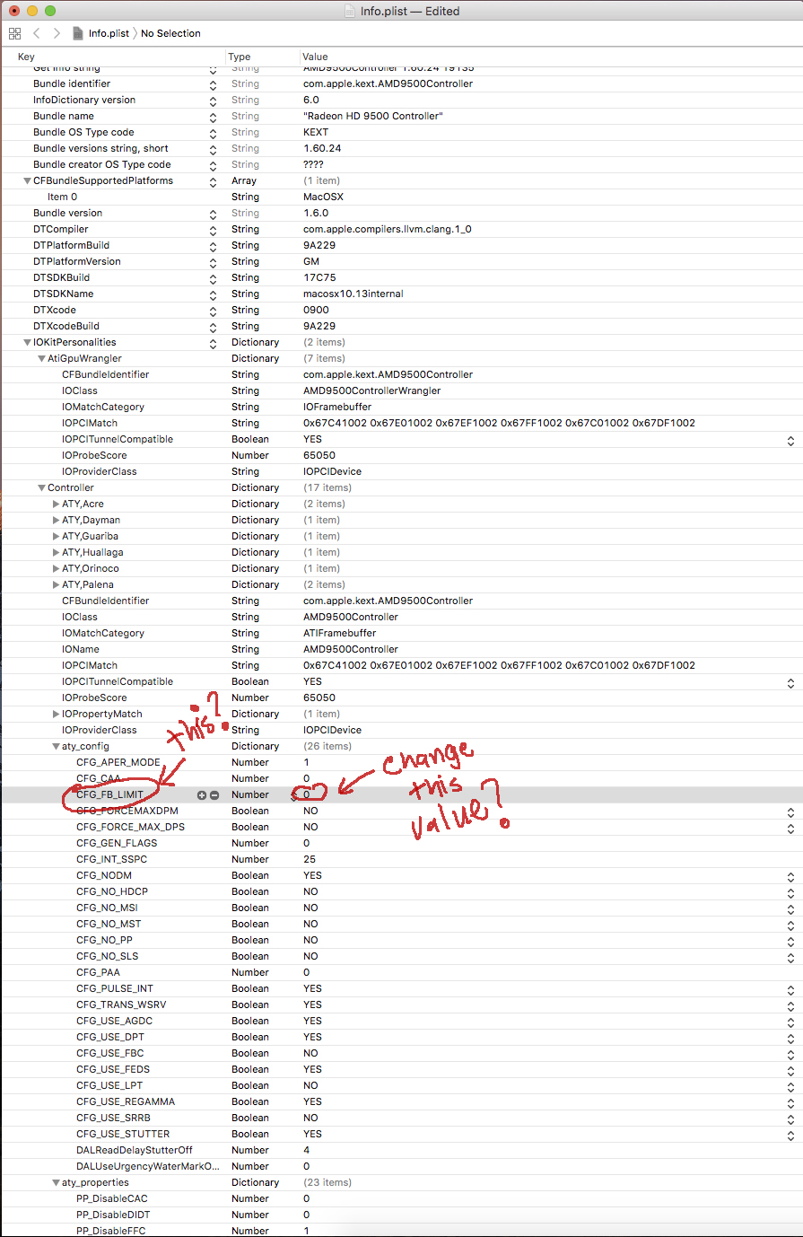 But, when I looked at info.plist under System>Library>Extensions>AMD9500Controller.kext>Contents>info.plist