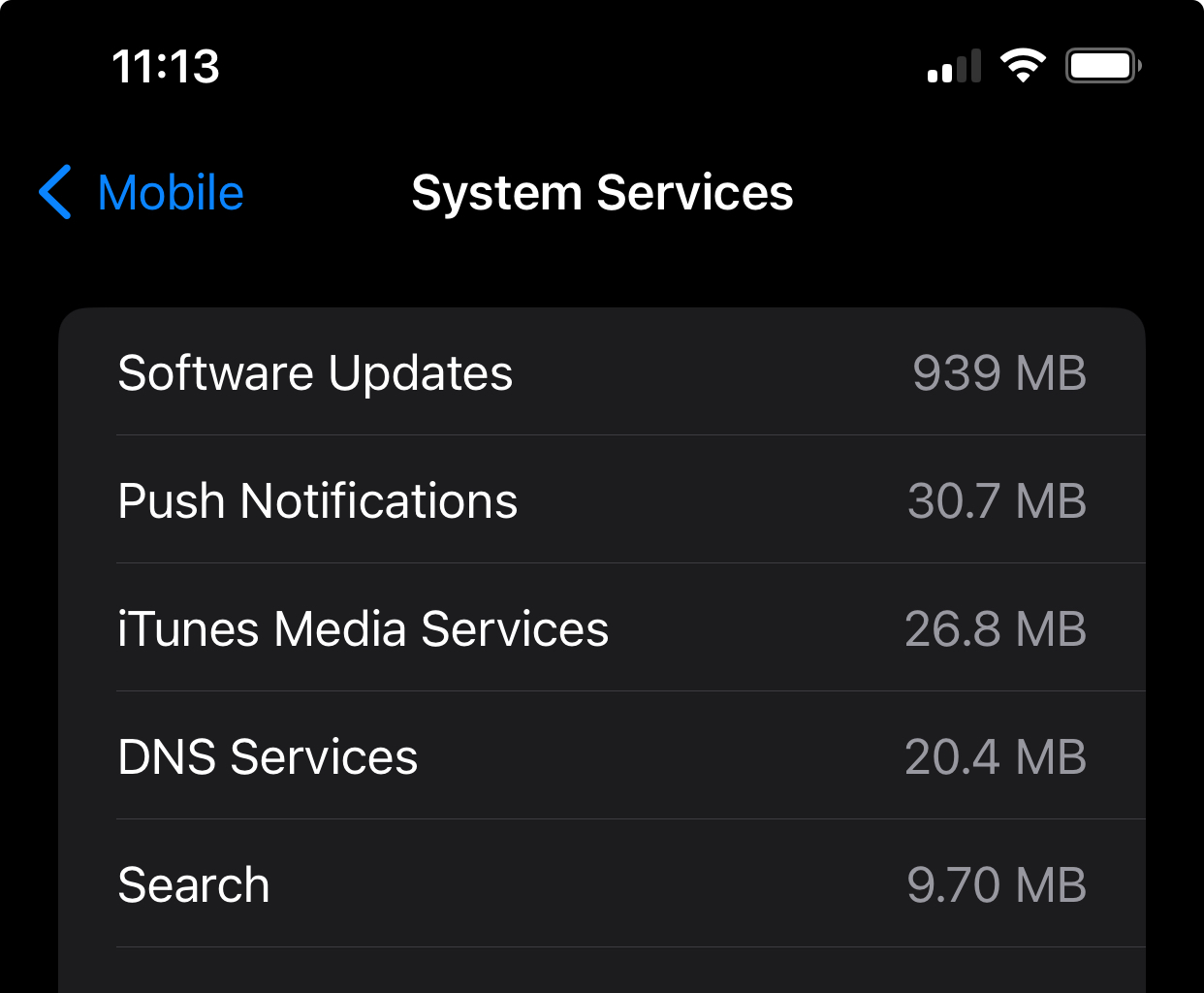 * Low Data Mode enabled for Mobile/Cell Data (Settings → Mobile → Mobile Data Options → Low Data Mode = on)