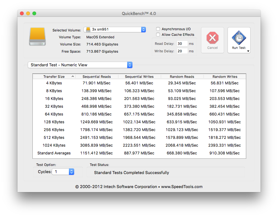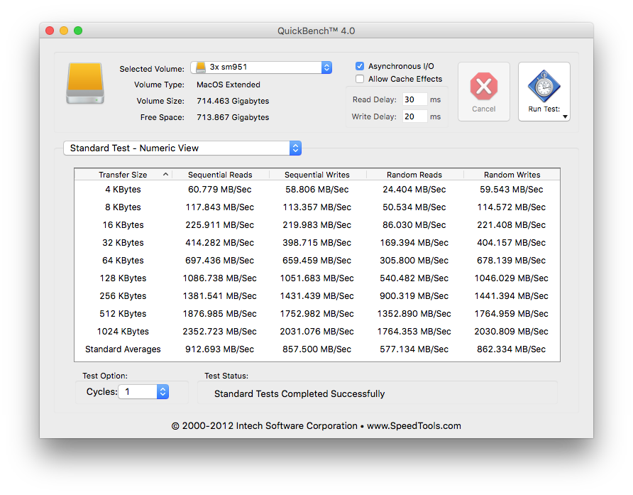 I was able to tear down the Amfeltec Squid 2.0x4 this morning, removing 3 SM951's and their heatsinks that are setup in a software raid. Moving them across to the 7101A, some interesting results came to light: