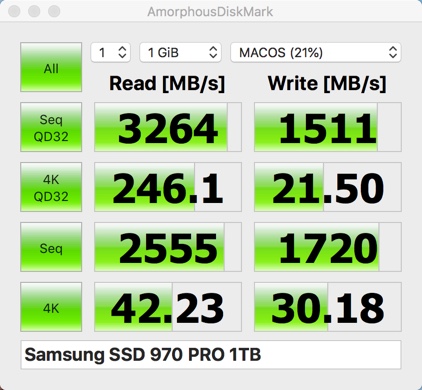 Wow! It appears we have easily crossed the 3000MB/s mark on the MP3,1 using a different disk bench-marking app... sweet.