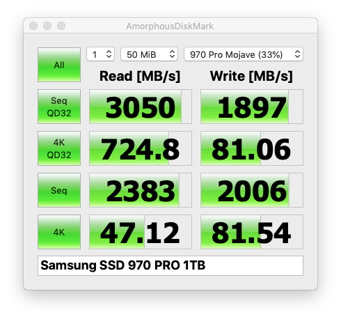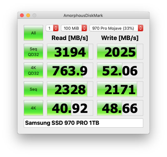 Quick update - Got the 970 PRO 1TB today.. Initial results after multiple blackmagic runs - highest speeds 2712MB/s Read and 2538MB/s Write but I can't cross the 3000MB/s Read mark and I think it's due to hardware (mac pro 3,1) limitations.