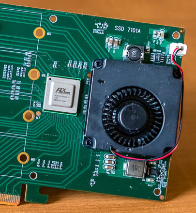 I was able to tear down the Amfeltec Squid 2.0x4 this morning, removing 3 SM951's and their heatsinks that are setup in a software raid. Moving them across to the 7101A, some interesting results came to light: