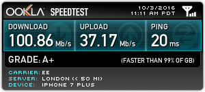 I honestly have no idea. I remember with the 5s I thought 15mbps here was excellent.Sweet speeds.