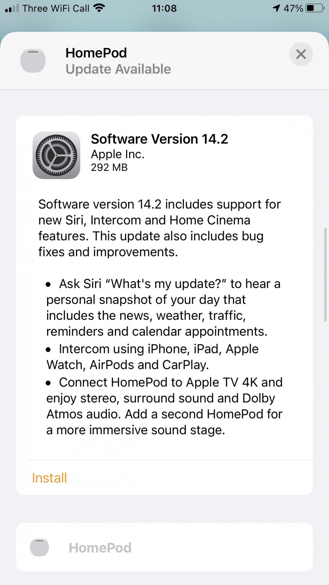 I strongly suggest you don't upgrade to 14.2 as Handoff seems to be broken or certainly not as responsive as it finally became under 14.1.Interestingly, the HomePod mini is running software version 14.1 and there's a 14.2 update already available.