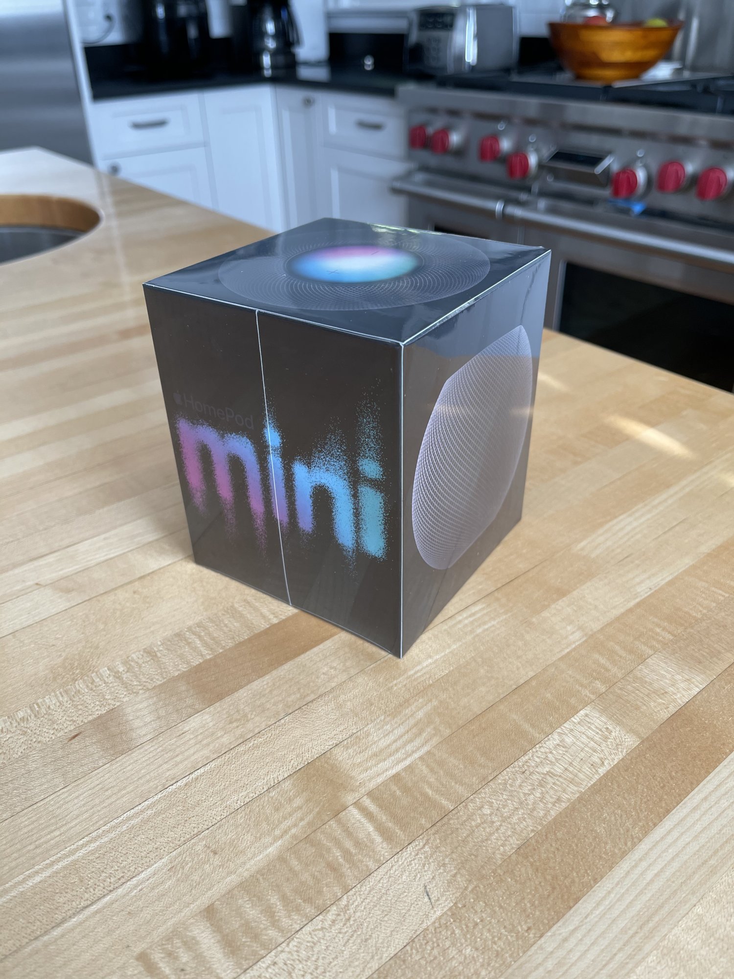 I didn't even notice the home pod....my eyes went right to your stove!Just arrived, sounds very good for the size, not the same as HomePod, but for the size, really good