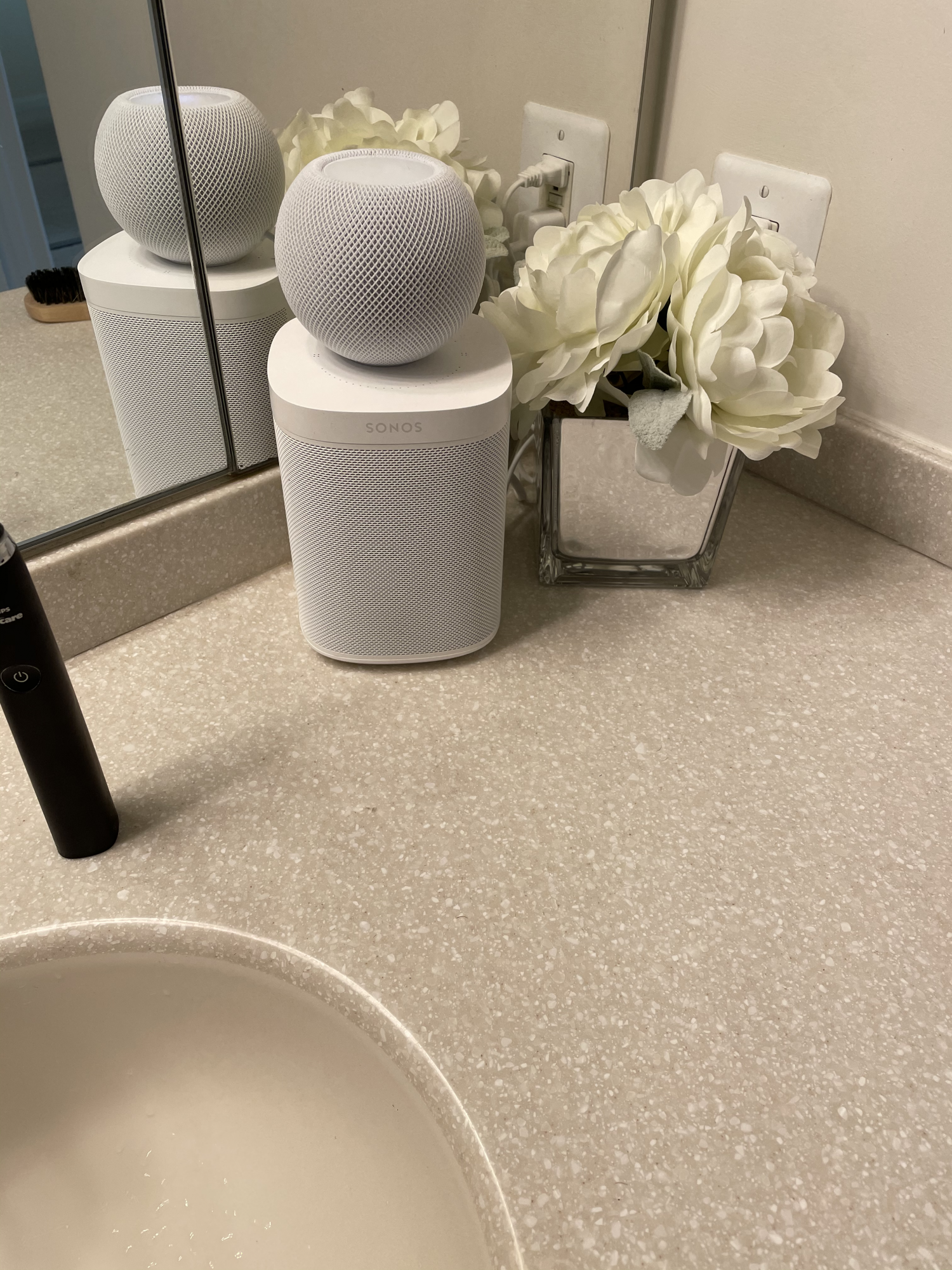 You're absolutely right. This is my current set up for now I just couldn't do with the muffled sound compared to the Sonos. I do want Siri in the bathroom not sure what else to do.It was never meant to compare to the Sonos One. They are in completely different classes. If you honestly thought it would be the same, you were deluding yourself. For what they are, based on what i've heard (mine won't be here until tomorrow), they seem to be exactly what I was expecting. Roughly equivalent or slightly better than the new Amazon Echo Dot.
