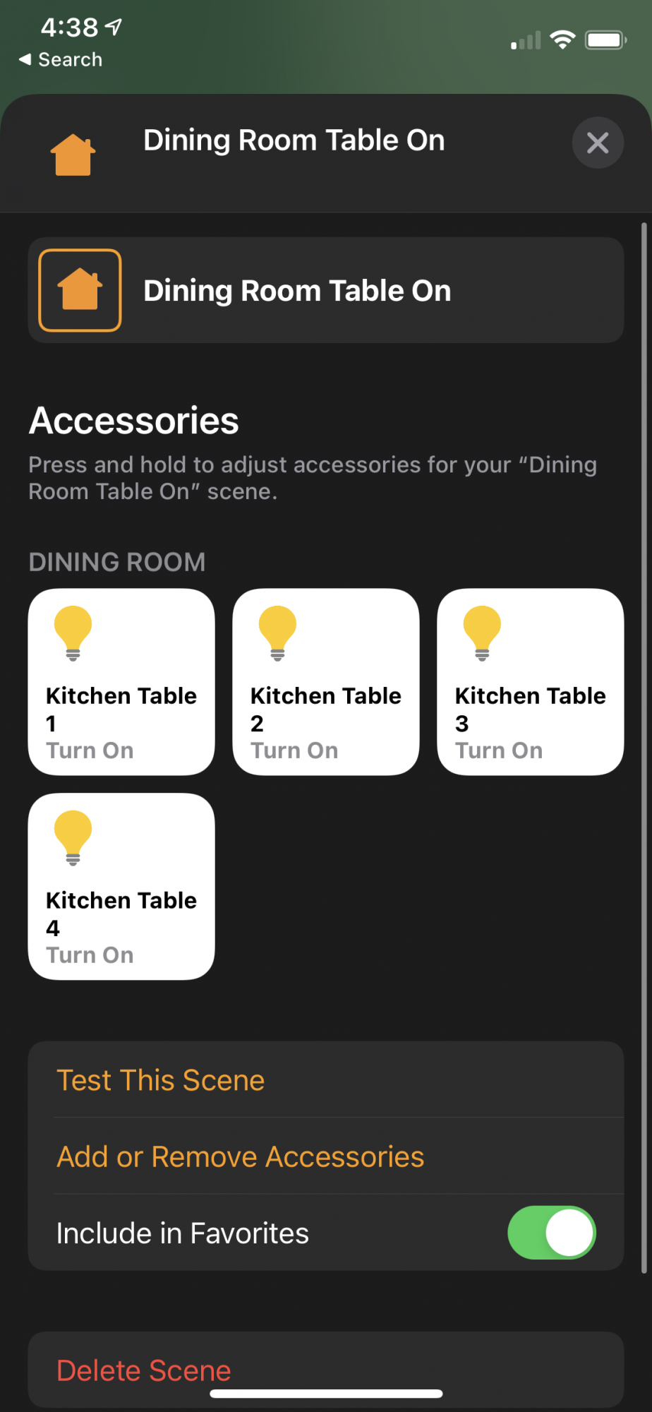 yes in the home app taping the scene once turns it on and another time turns it off do you even have the app i use it every day. Clearly you have never tapped a scene twice. Attached is the scene if i tap once in the home app the lights turn on if i tap again they turn off??? both scenes i created here will turn the lights on and off by tapping in the home app. the home pod requires two to complete the task only doubling the amount of setup and commands to remember to turn a set of lights on and off