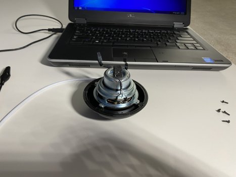 Remove the 4 rubber screw covers on the top side, remove the 4 T6 screws. Carefully separate the top from the HomePod Mini. Some moderate strength adhesive is used. Flip up the retaining tab and disconnect the digitizer ribbon cable. Flip up the retaining lever and remove the microphone ribbon cable. Pull off the LED diffuser, and remove 4 screws securing the logic board (two secure the logic board to the speaker ring terminals) Using a black stick, pry the logic board up and disconnect the power cable connector on the rear side (extremely difficult, so patience is required) Logic board comes out.