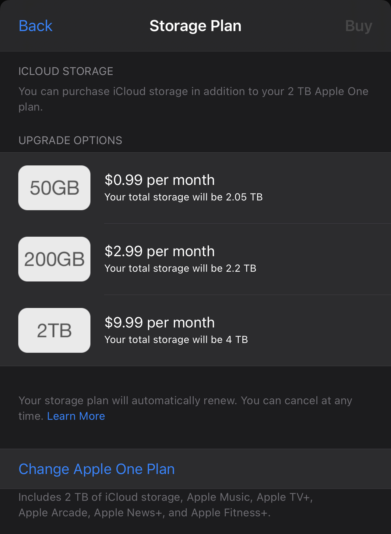 It's been stuck on its current configuration for the previous few years. Hoping they'll up the storage tiers. Particularly 200GB doesn't really cut it anymore, and 2TB is too much — hoping for either an increase of 200GB to 500GB, or a 1TB tier.