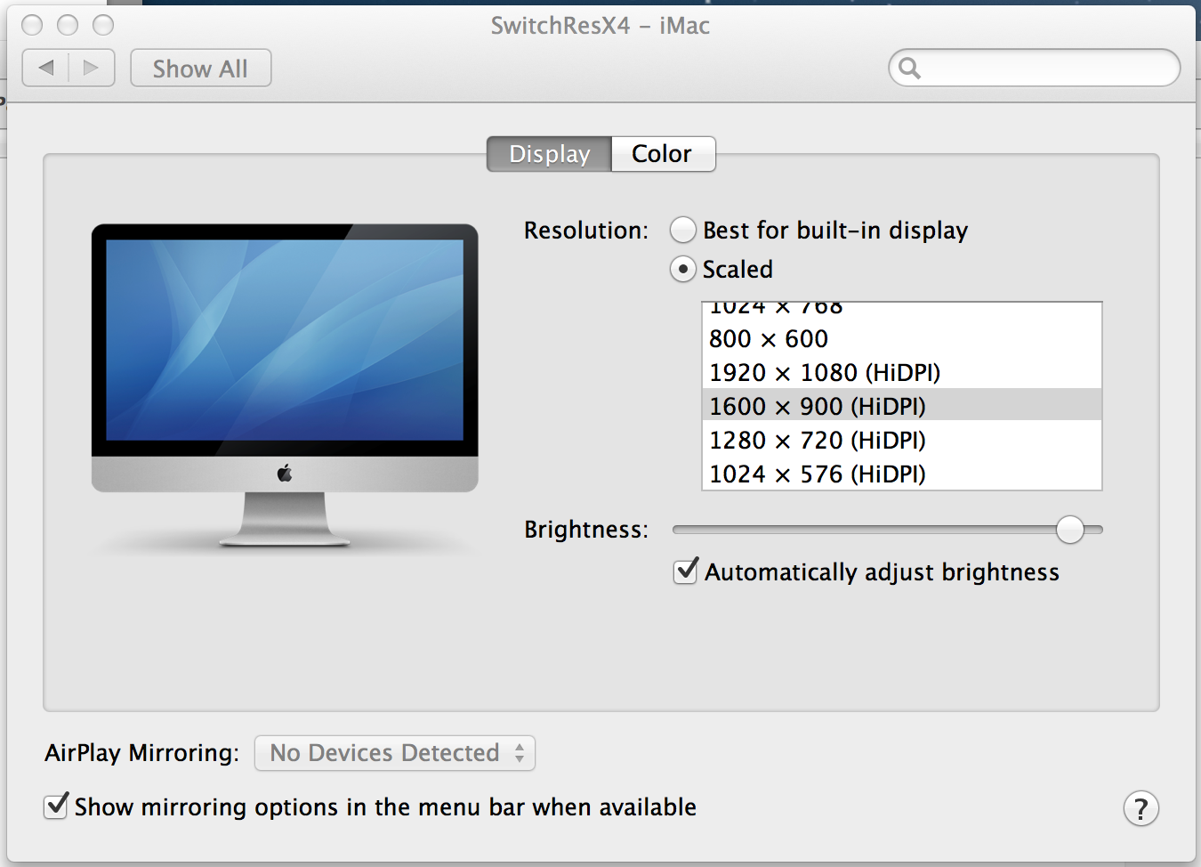 Unfortunately the Apple store doesn't let you put any software on the demos in the store. I am hoping any nMP owners could give feedback as to whether the SwitchResX software that creates custom HiDpi output resolutions works with the nMP w/ 27" Thuderbolt Display. I'd be interested if a custom 1920x1080 HiDPI resolution could be created as it's what I have running on my late 2012 27" iMac. The software is free to try and allows one custom resolution (enough for this test). It seems it works with internal monitors but doesn't always work with external monitors. Thanks!