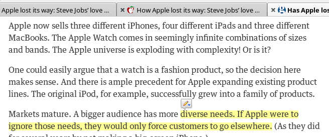 We bought Apple products knowing we were getting great tools that were going to make life better, more interesting, and more productive. All while being a joy to use. Not because Apple supported some legislation or threw millions down a hole somewhere. Apple's mission I stated earlier as "deliver tools that people enjoyed using, tools that would help them create and communicate like nothing before"; Apple's result was "here are the tools, now go change the world". Under Cook it seems to have become "