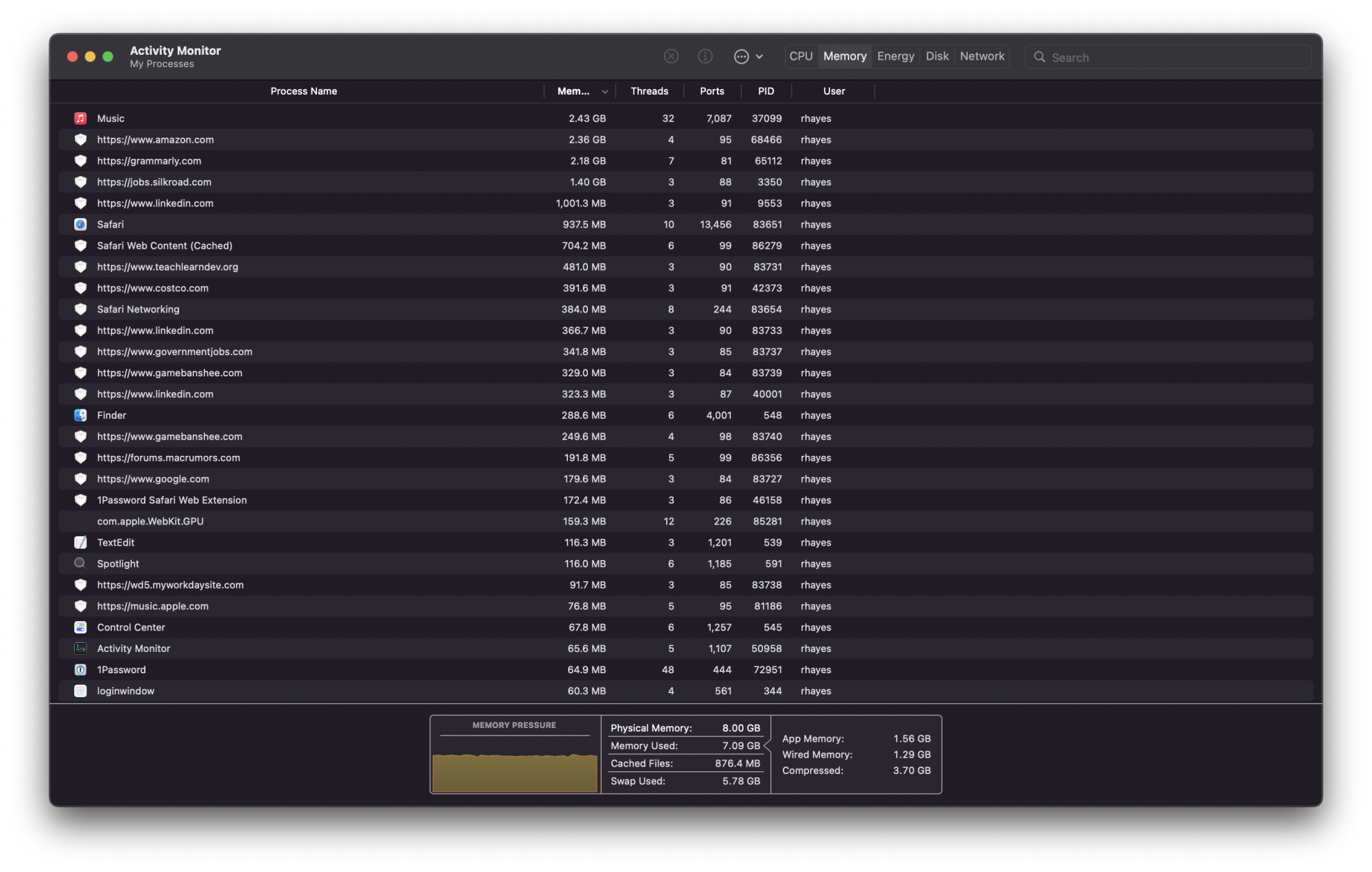 I am not doing that with this M1 Air, but that is what I have done for a decade or more with a MacBook Pro. Another example would be researching between 14" MacBook Pro and M2 Air. I'll google reddit, macrumors, etc. CMD click 10-12 threads open. Read through them for research while listening to music, checking email, checking social media, etc. Plus, still have other tabs open. I'll get distracted or bored, take a break from the current research, then get into checking something else. I'll leave the tabs open to come back.