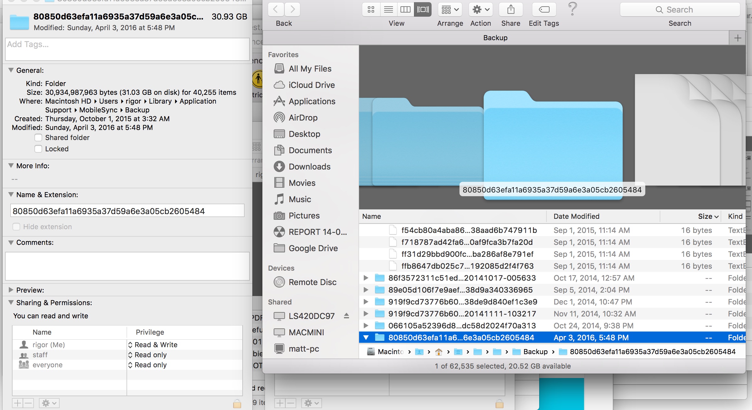 what you do is complete an iTunes backup. then you can go to iTunes , preferences, click on devices. on that screen you right click on the backup set. and you tell it show in finder. once the finder window opens, click on command I