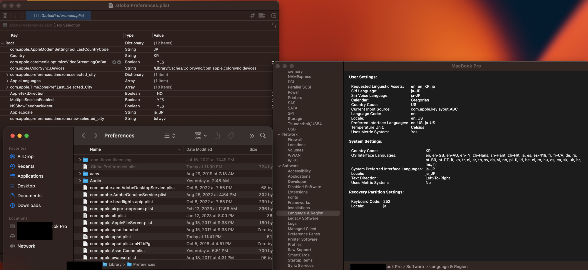 In this window, the Country Code of System Settings is KR. (Maybe, Korea?)