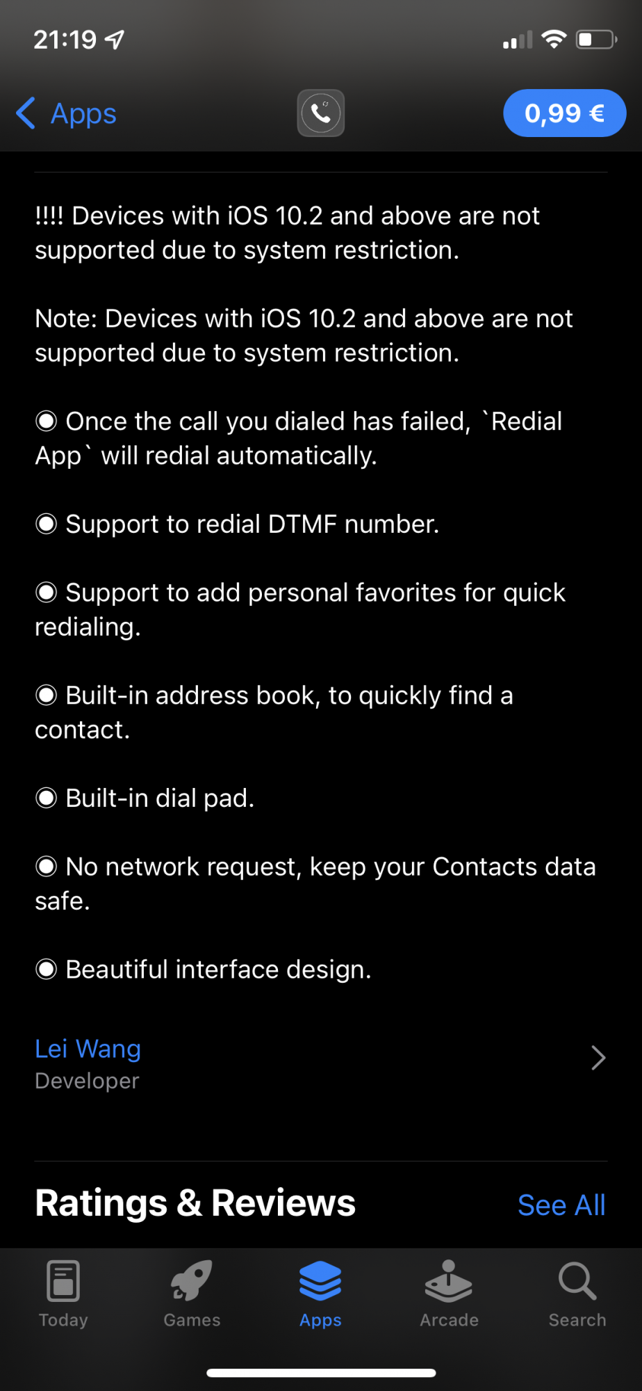 Just went into App Store (Portuguese) and the no one paid app is something called redial which is years old and says it’s not supported on any device past 10.2.
