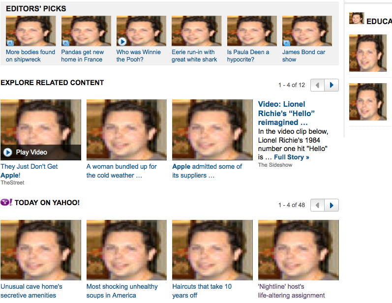 When I click on the replies to some comments on yahoo.com, this happens, the attached picture in this thread. The picture comes from the profile of a person who left a comment. This has happened before. Any ideas?????