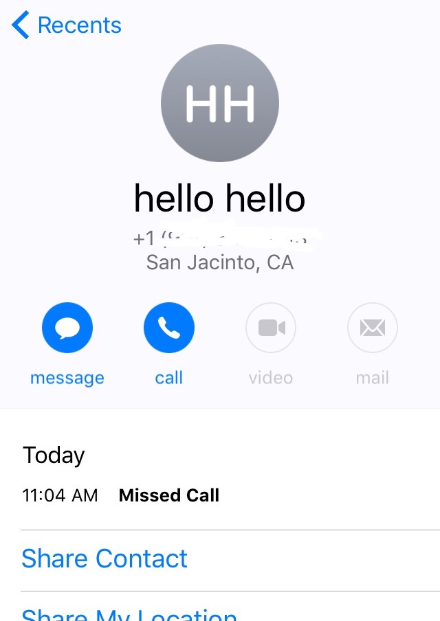 Btw -- I saw the call come in, but did not answer it; the caller info just said "hello hello" and the city/state.