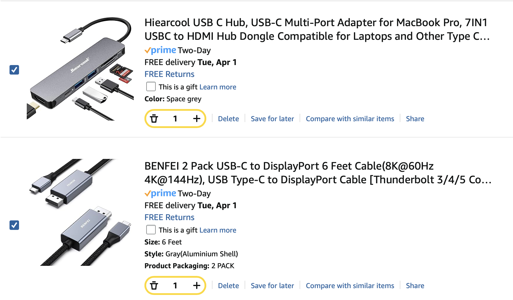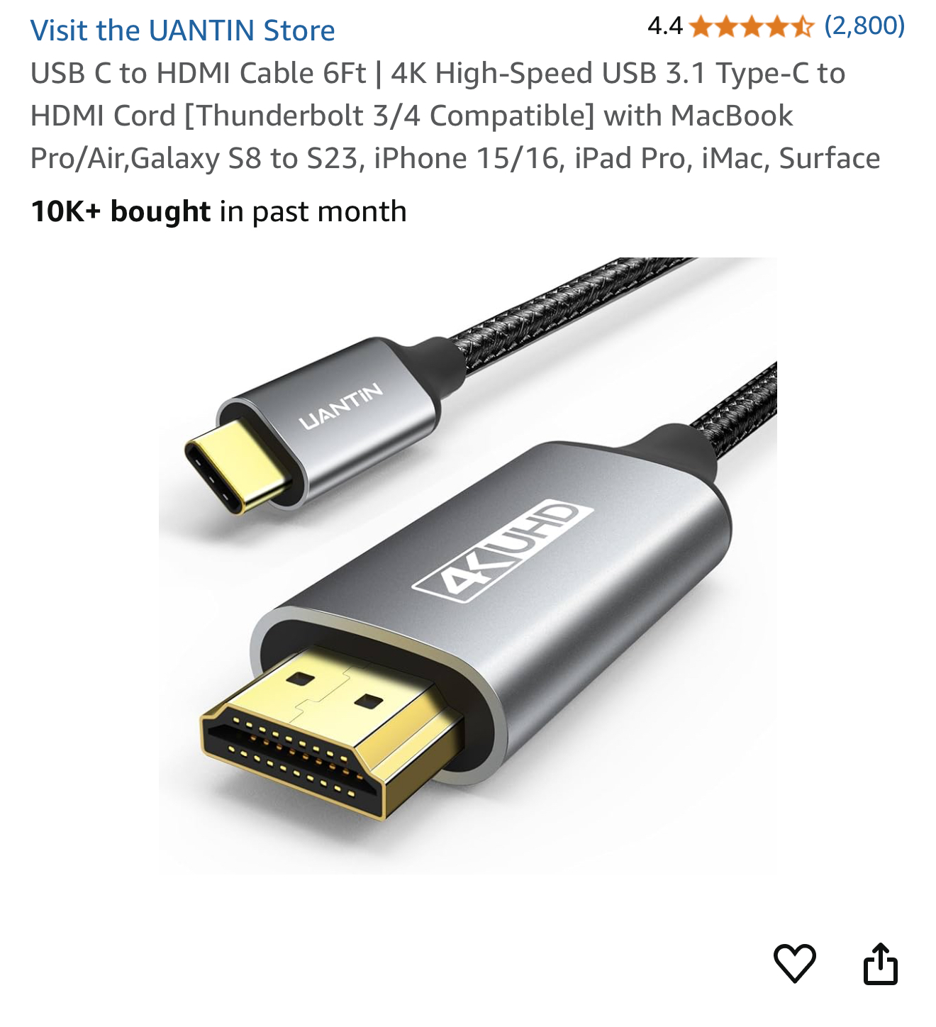 Depending on your monitors, USB-C to USB-C cables may work as well...you didn't give us a model number.