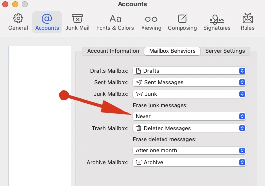 I noticed that on my new M1 MacBook Air, the Mail application will automatically delete messages that are two weeks old or greater from the inbox. Is there a way I can change the settings so this doesn't happen? I like to keep old messages available if I need to look things up (receipts and the like), and it's set up that way on my 2012 quad-core Mac Mini, but I am having trouble trying to achieve this on my MacBook Air.