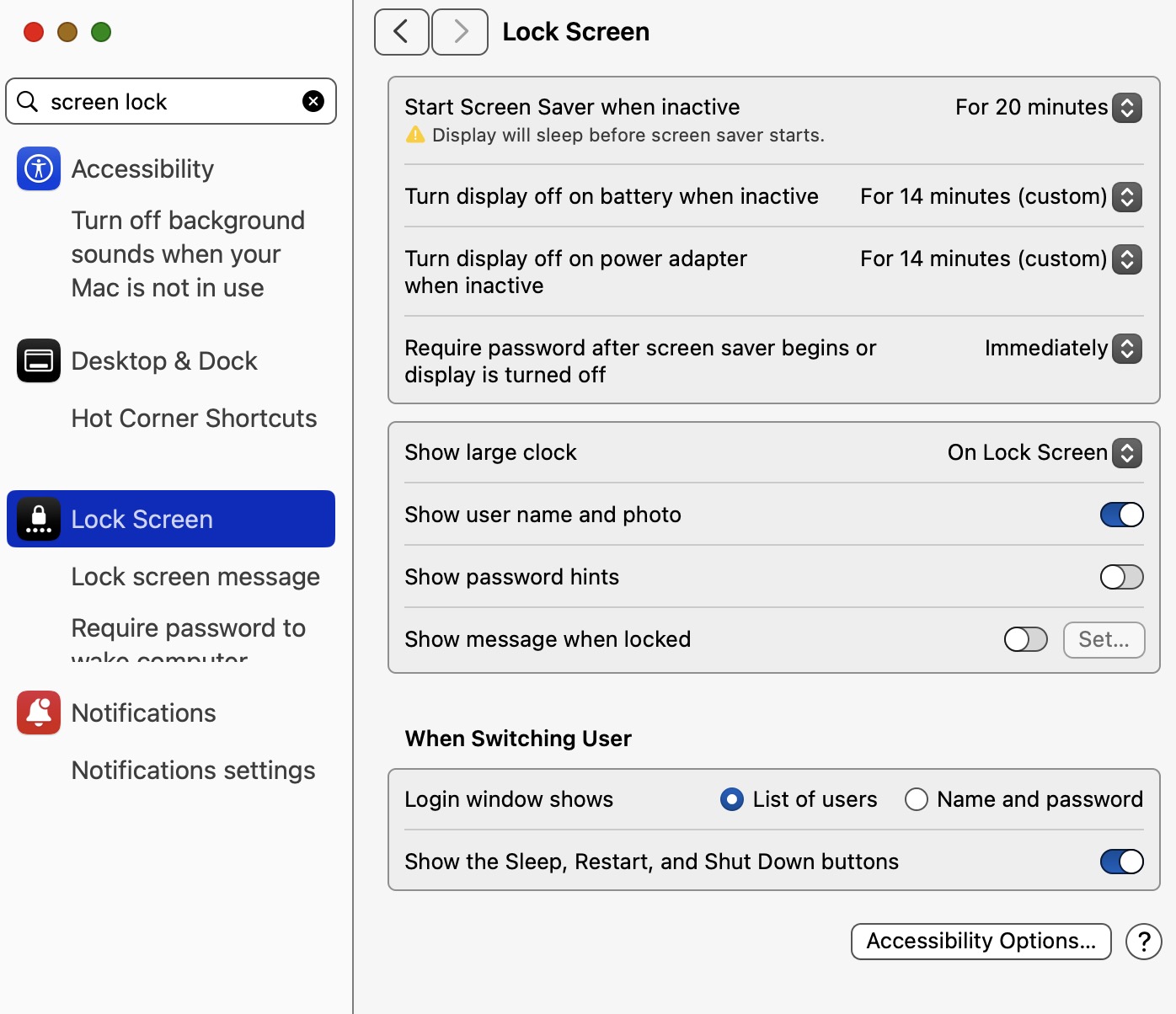 I've noticed since that the screen does not go off, and stays on for hours, regardless of the settings I put in for the screen saver, E.g. the below settings I have tried. I've changed to a static screen for the login page, no good either. I though the moving screensaver could have been keeping the screen active, and therefor left on.