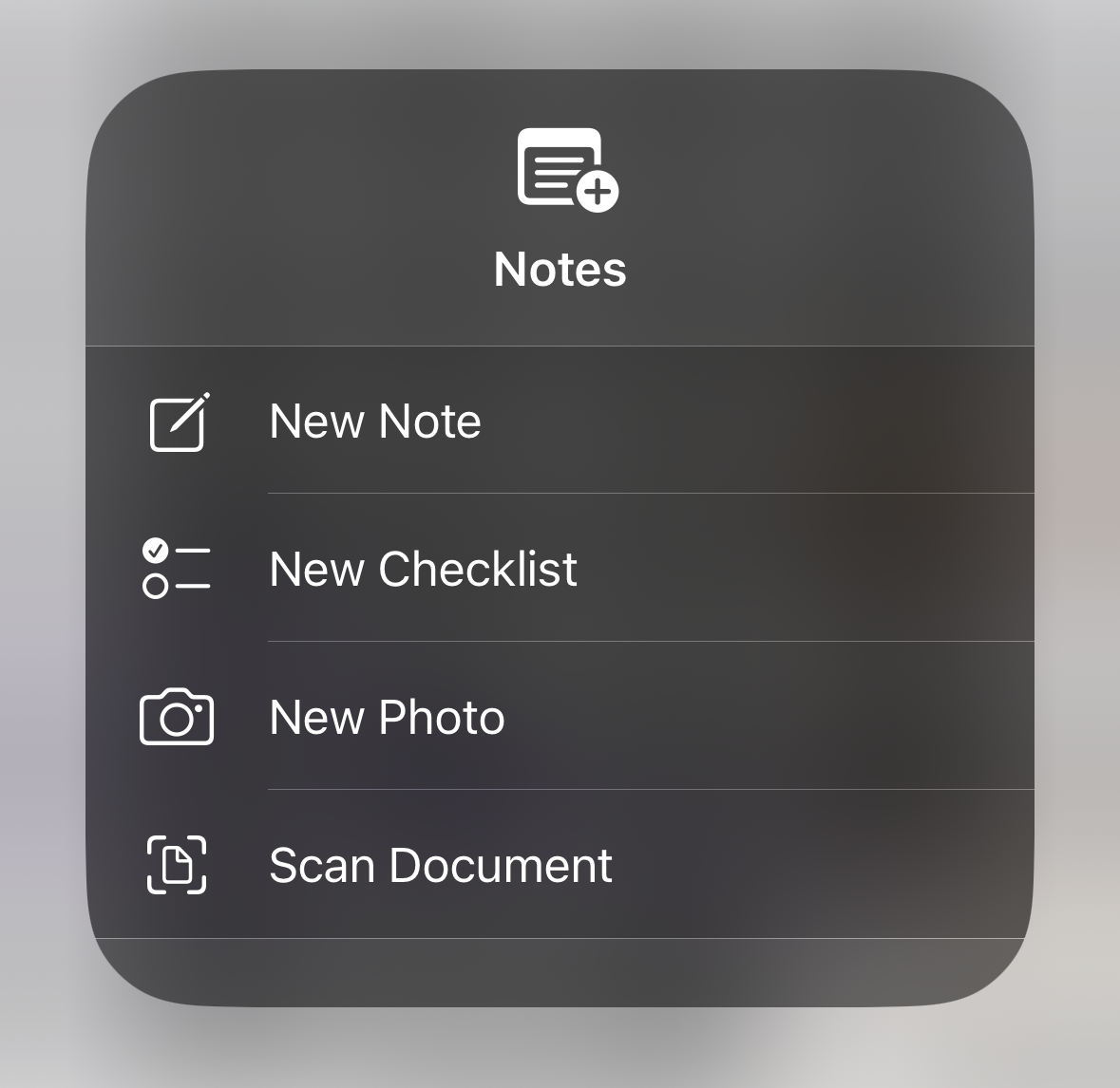 If you just tap it, you'll start a new blank note. But if you press and hold for a moment you'll get a menu offering a few Note pre-set options, including document scanning: