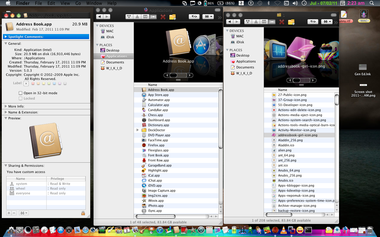 I'm not sure what you're doing different, or what's different about your setup, but using the instructions I posted, I can change the icons for all apps, including Finder and iTunes. For example, here's my iTunes icon:Guys I have noticed that... the apps I added to docks ... I can change the icons to them.....
