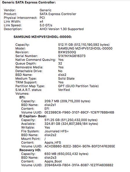 CoastalOR macrumors 68040 Jan 19, 2015 3,052 1,160 Oregon, USA Oct 19, 2015 #5 doctheseus said: how to get to this screen.. i just installed a crucial SSD and enabled trim with the same command line as above in terminal... Click to expand... >About This Mac>System Report...>SATA/SATA Express