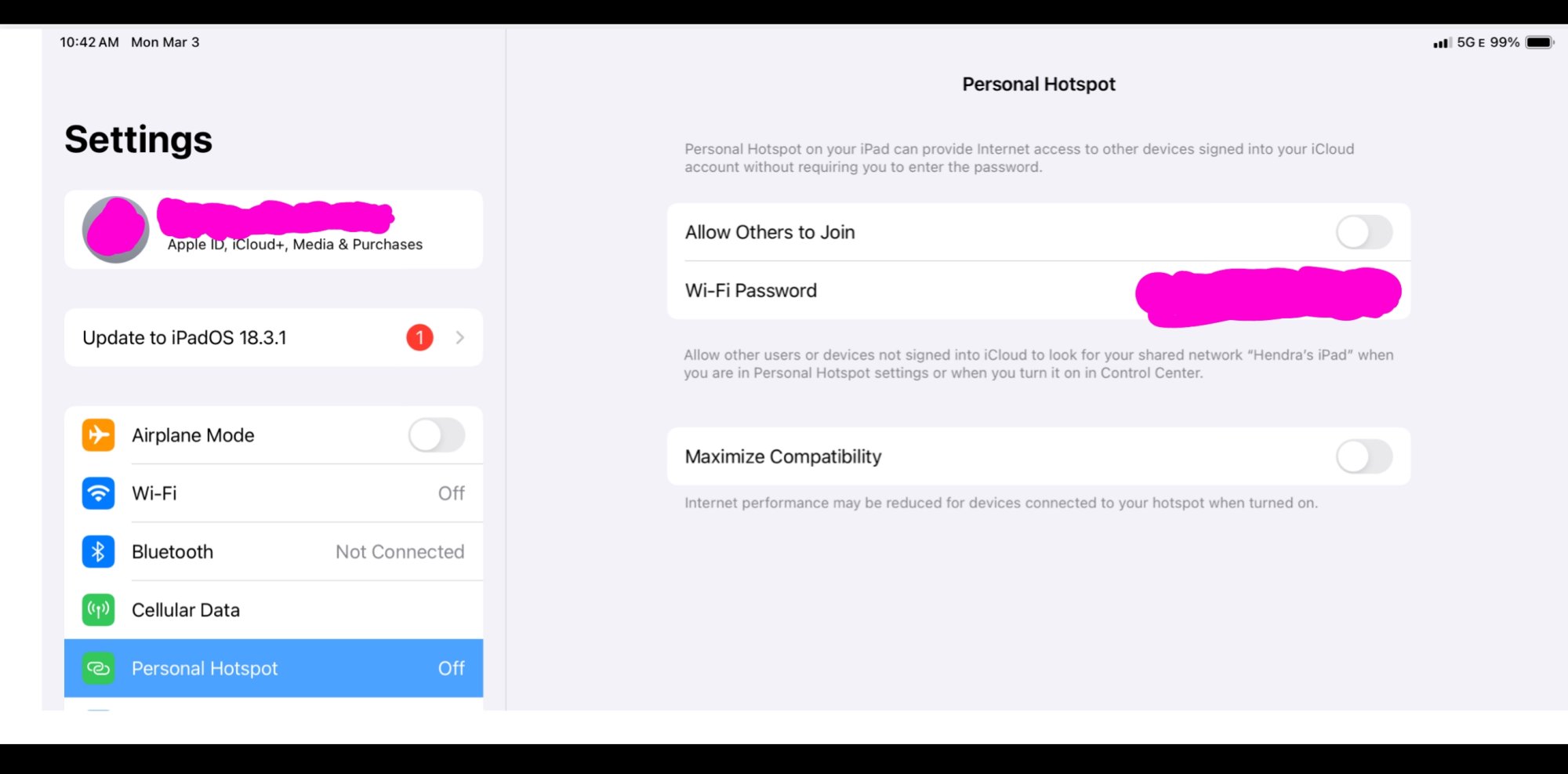 You can turn the hotspot on/off through the Control Center, or create a shortcut that does it.
