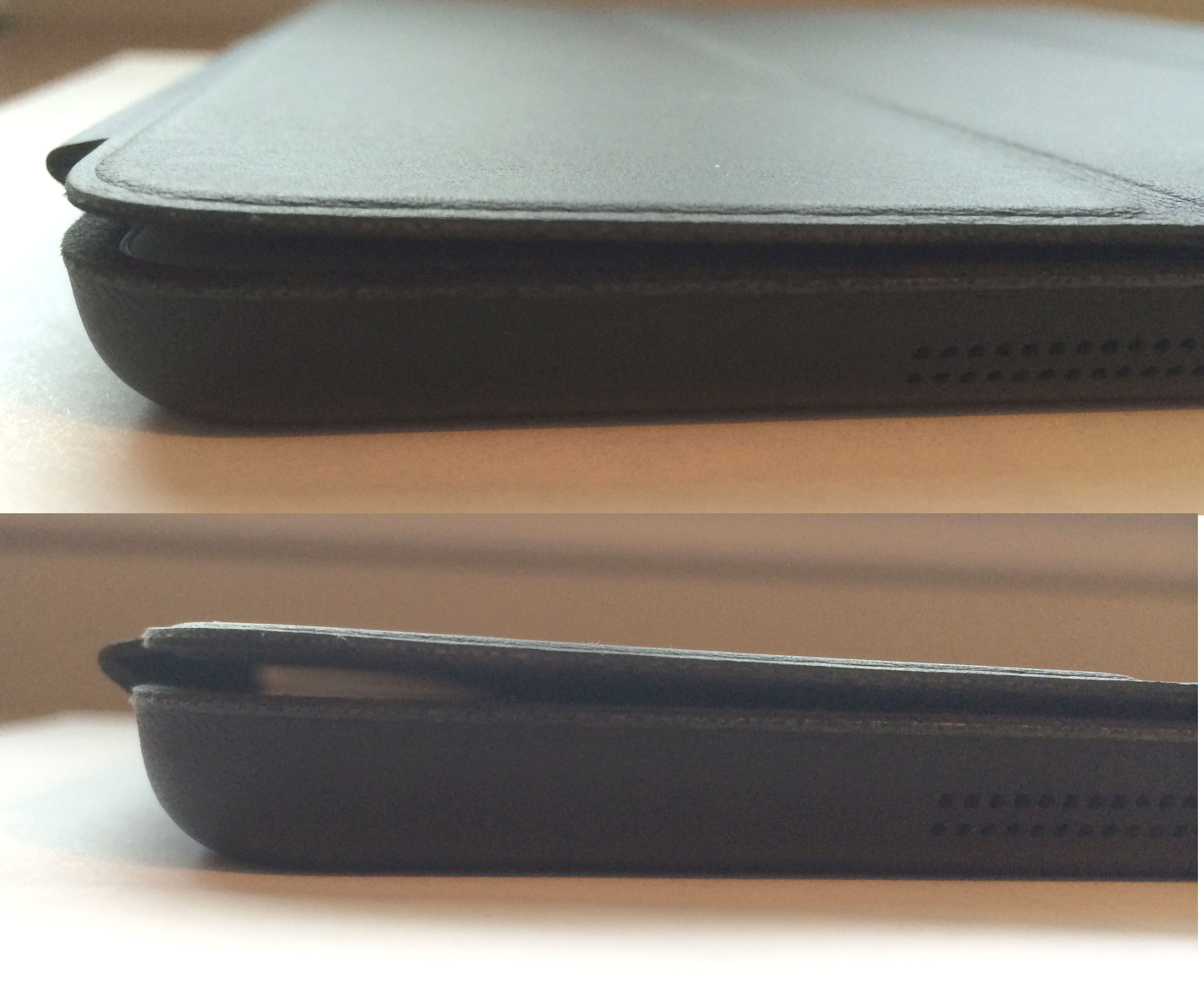 Don't know what the other poster was referring to, but in my case, the texture of the leather on my Air2 case feels nicer. Hard to describe, but it just feels like a bit more high quality leather.