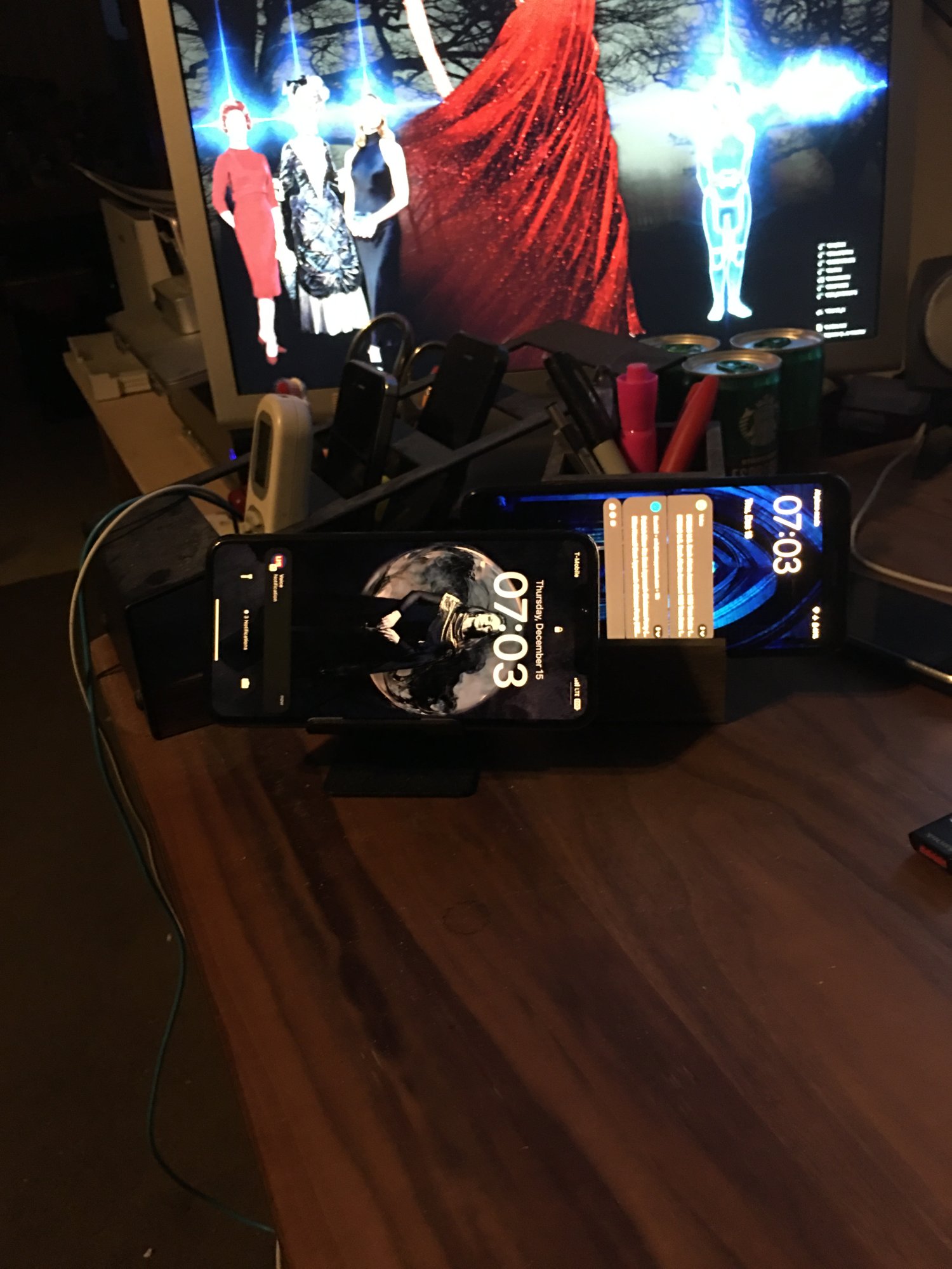 The majority of the time my phones go into business card holders. I have one for each space I occupy. My desk in the front room, the desk in the bedroom next to the bed, in the garage where I have another setup, etc. In cars, my phone goes either in a cupholder or in a space before the shifter in the case of my older car. When I'm out the phone will go on a table or on my seat/chair under a thigh so it doesn't move. When walking, it's in a back pocket.