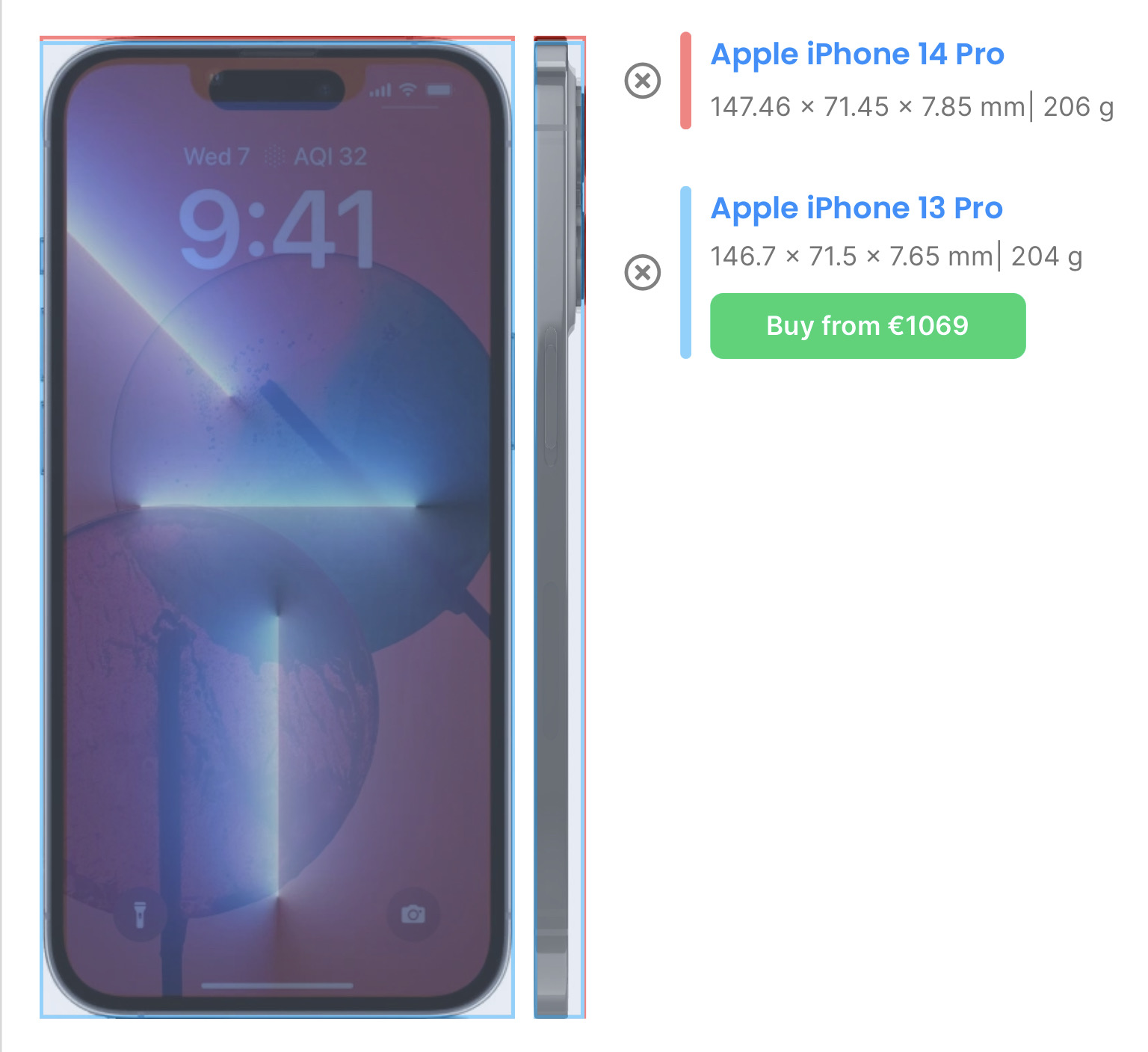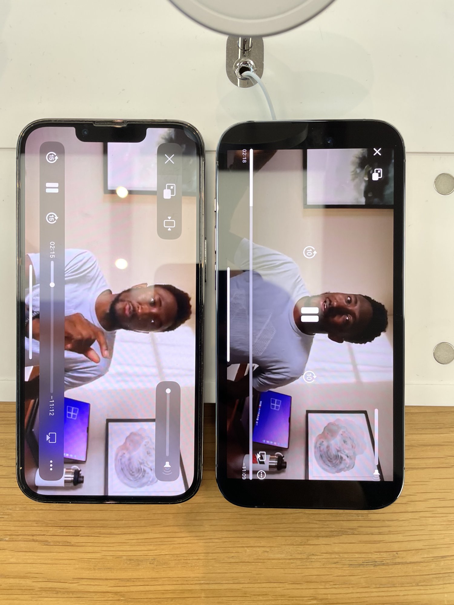 In terms of physical size, if you put the phones next to one another, the island bottom lip is at the same level of the notch bottom lip, due to different physical size and more screen / less bezels.
