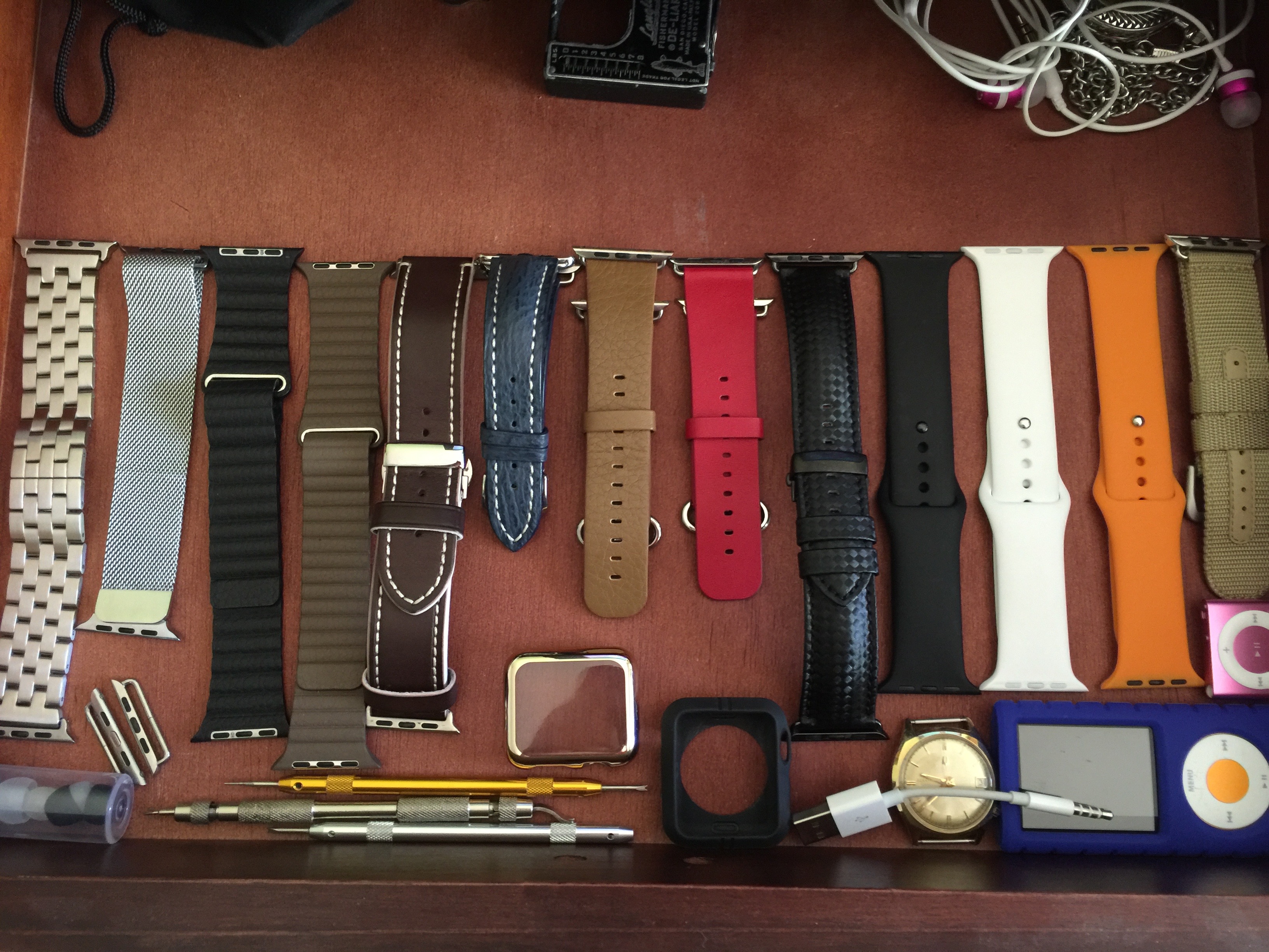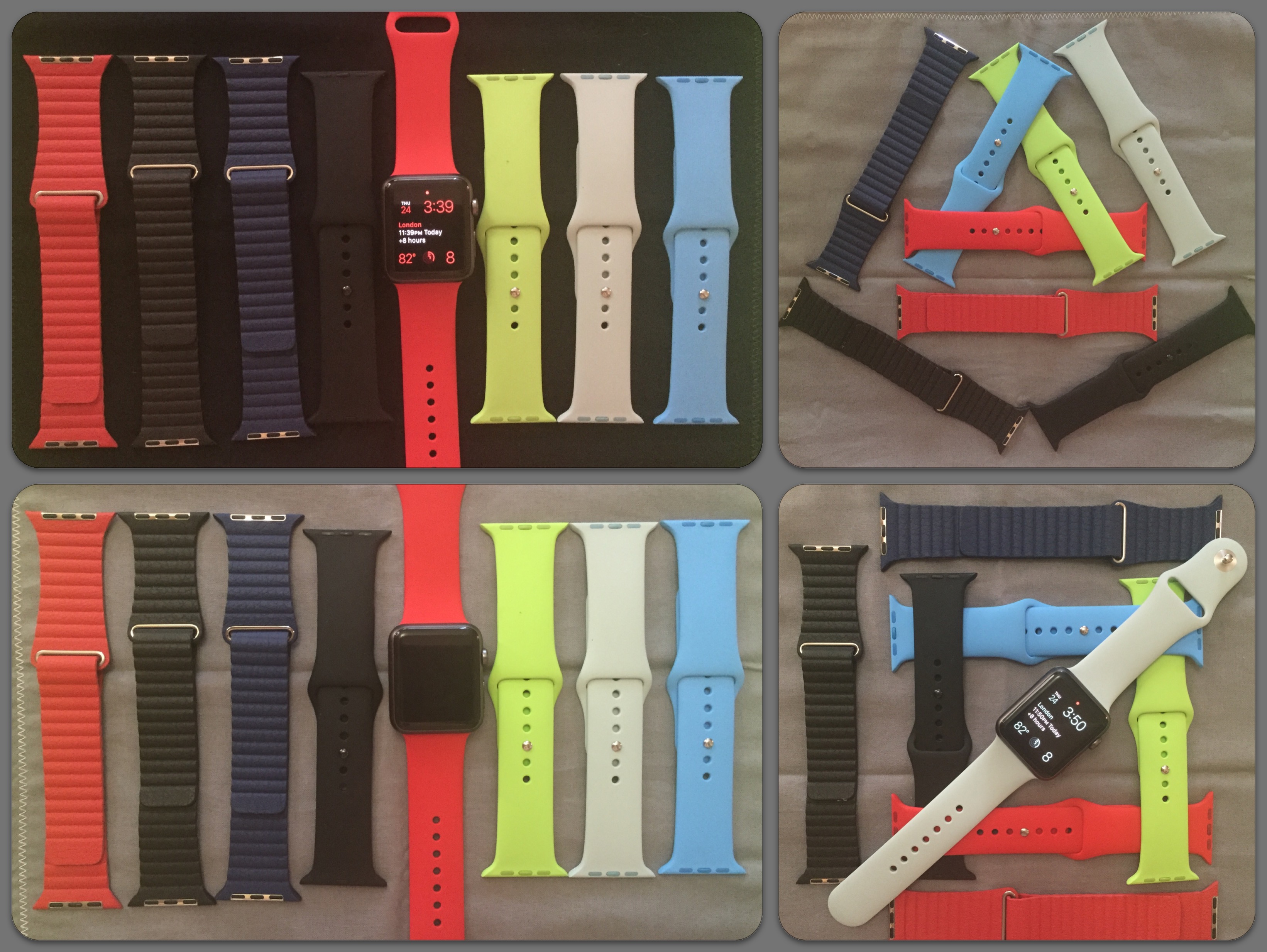 I have the white sport band that came with my watch (a silver sport) plus a Milanese loop and a black sport band. From the pictures, I'd expected to really love the green sport band but the colour isn't quite right for me (I'd like it to e a bit zingier); the blue band, which I hadn't expected to like based on the photographs, is quite tempting.
